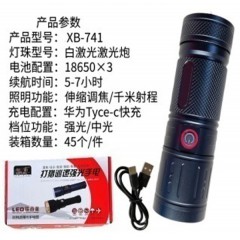 型号741超强光手电筒厂矿照明,户外超亮白激光远射可充电应急夜钓大功率手电筒