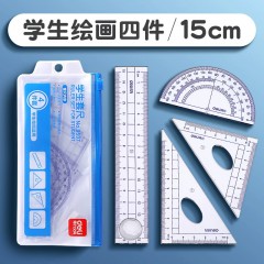 得力文具学生绘图套尺三角尺量角器软尺子圆规直尺15cm套装