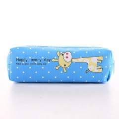 长劲鹿蓝色文具袋卡通方形PU笔袋可爱动物文具袋