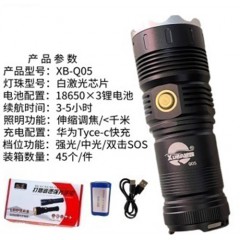 型号Q05 伸缩调焦手电筒 电池;3节18650组合 充电;TYPE-C快充 灯珠;白激光灯芯 流明;80W激光芯片续航;3-5小时