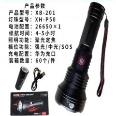 型号201 伸缩调焦手电筒 新款强光手电超亮长续航白激光充电户外照明电筒