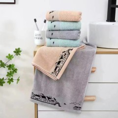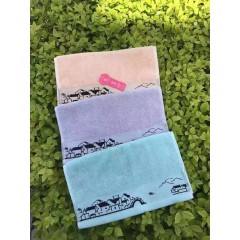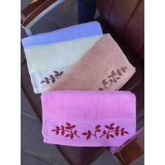 14支弱捻纱毛巾 尺寸34cm*74cm 重量110g房子.素运动.三角花.绿茶.树叶花.素字母.字母衣服.三段条等图案毛巾