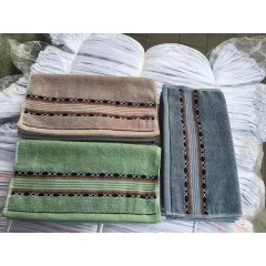 14支弱捻纱毛巾 尺寸34cm*74cm 重量105g,水波纹、吉祥格、一枝花、横条纹、黑红格、金丝毛巾、字母条等图案