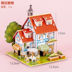 假日旅馆立体拼图3d立体拼图建筑房子模型男女孩手工DIY房子儿童益智拼装玩具礼物