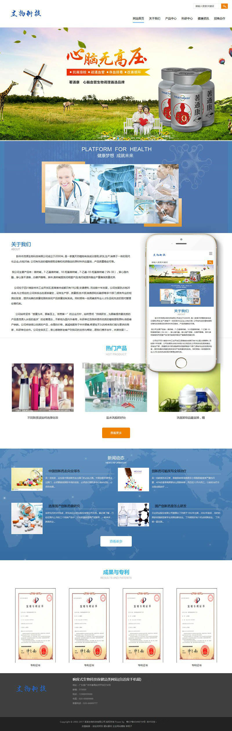 商品名称:响应式生物科技保健品类网站(自适应手机端)