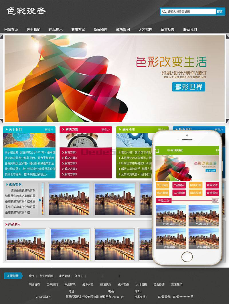 商品名称:印刷色彩设备生产类网站(带手机端)