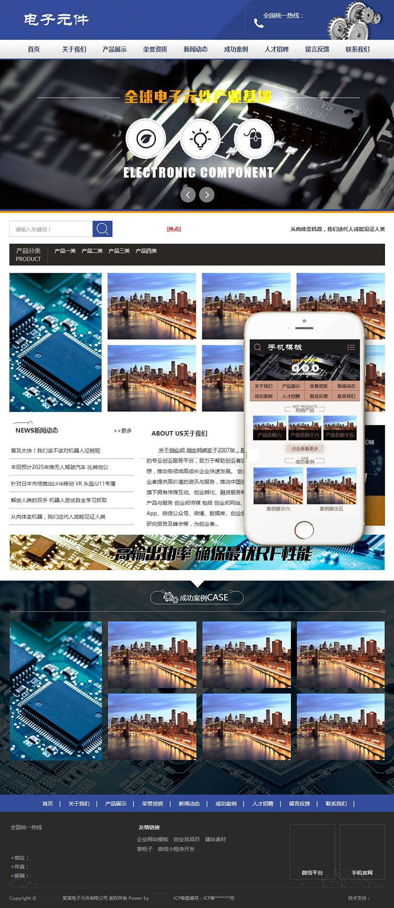 商品名称:电子元件工程工具类网站(带手机端)