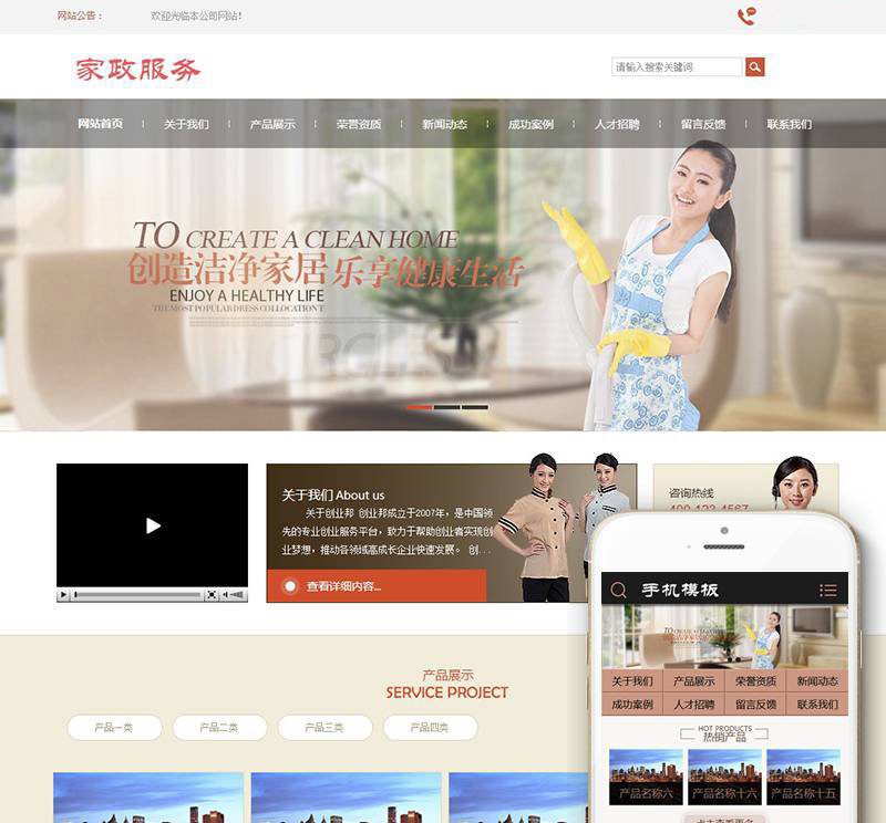 商品名称:洁净家居家政服务类网站(带手机端)
