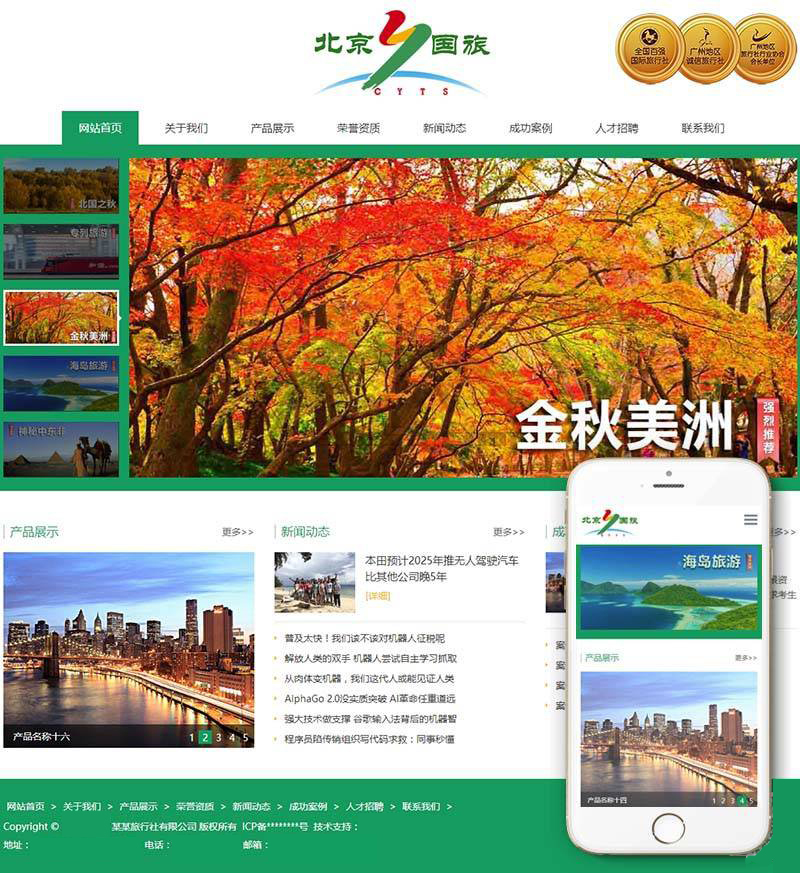 商品名称:响应式入境国内出境旅游行业类网站(自适应手机端)