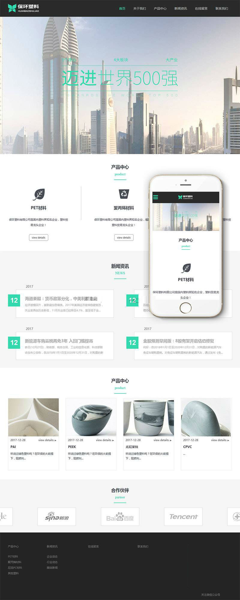 商品名称:响应式环保塑料材料类企业(自适应手机端)