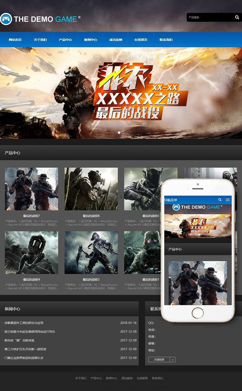 商品名称:响应式游戏开发展示类网站(自适应手机端)