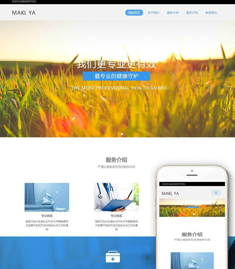 商品名称:响应式医疗机构类网站(自适应移动端)