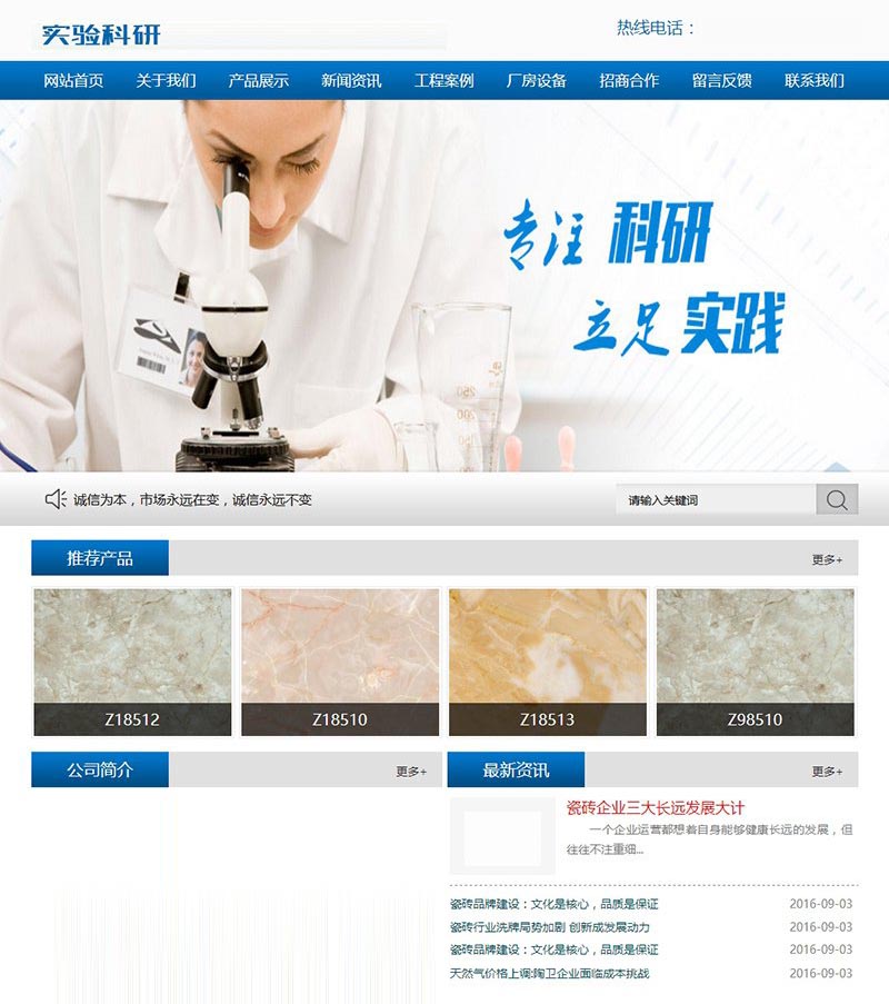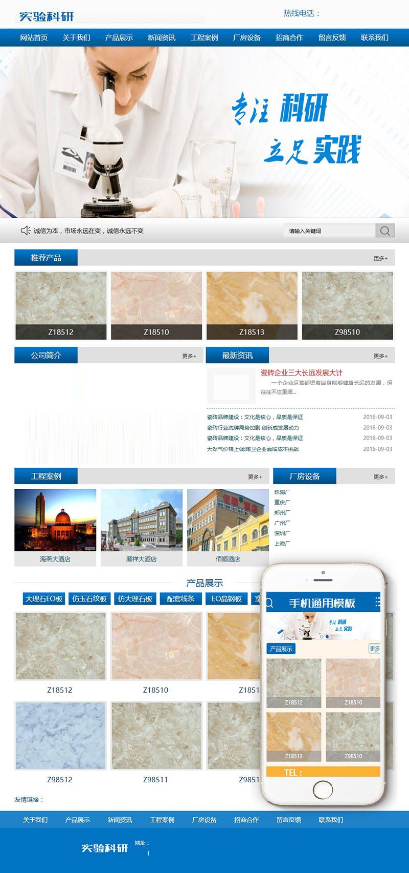 商品名称:企业实验科技研究类网站(带手机移动端)