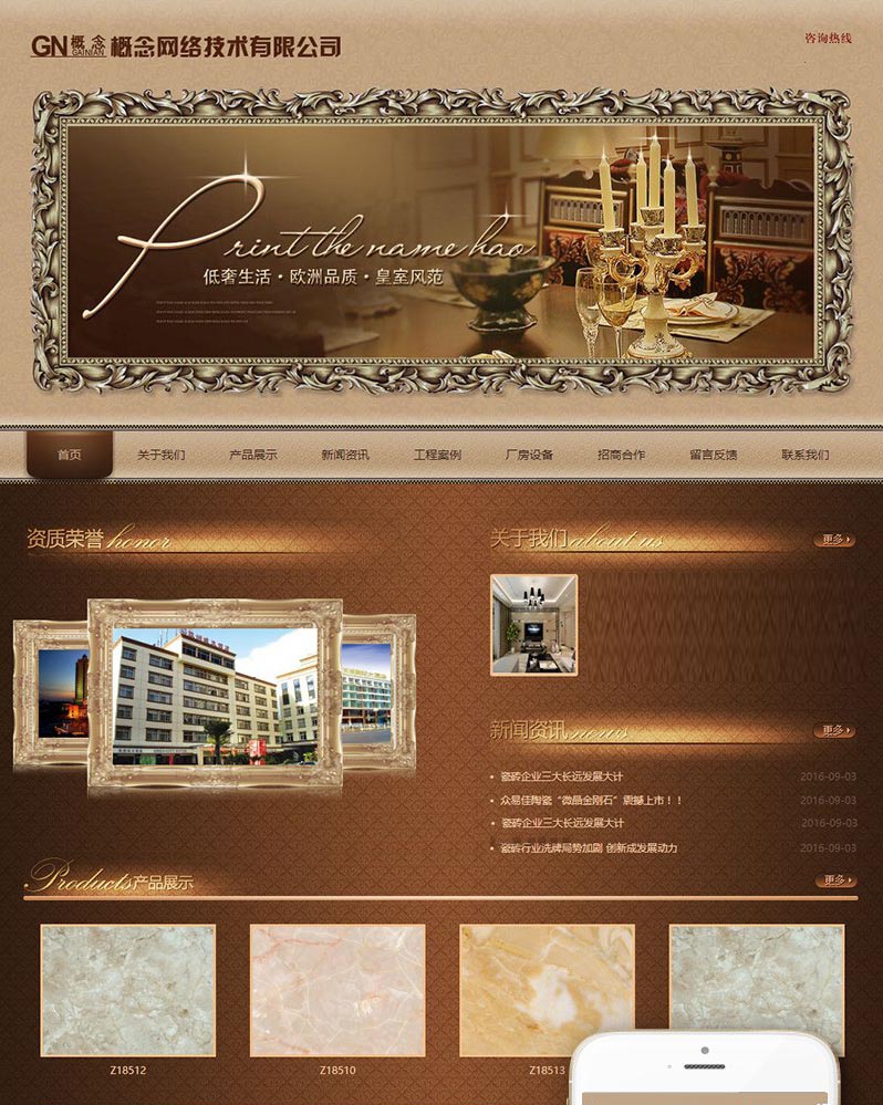 商品名称:古典复古风格装修装饰类网站(带手机移动端)