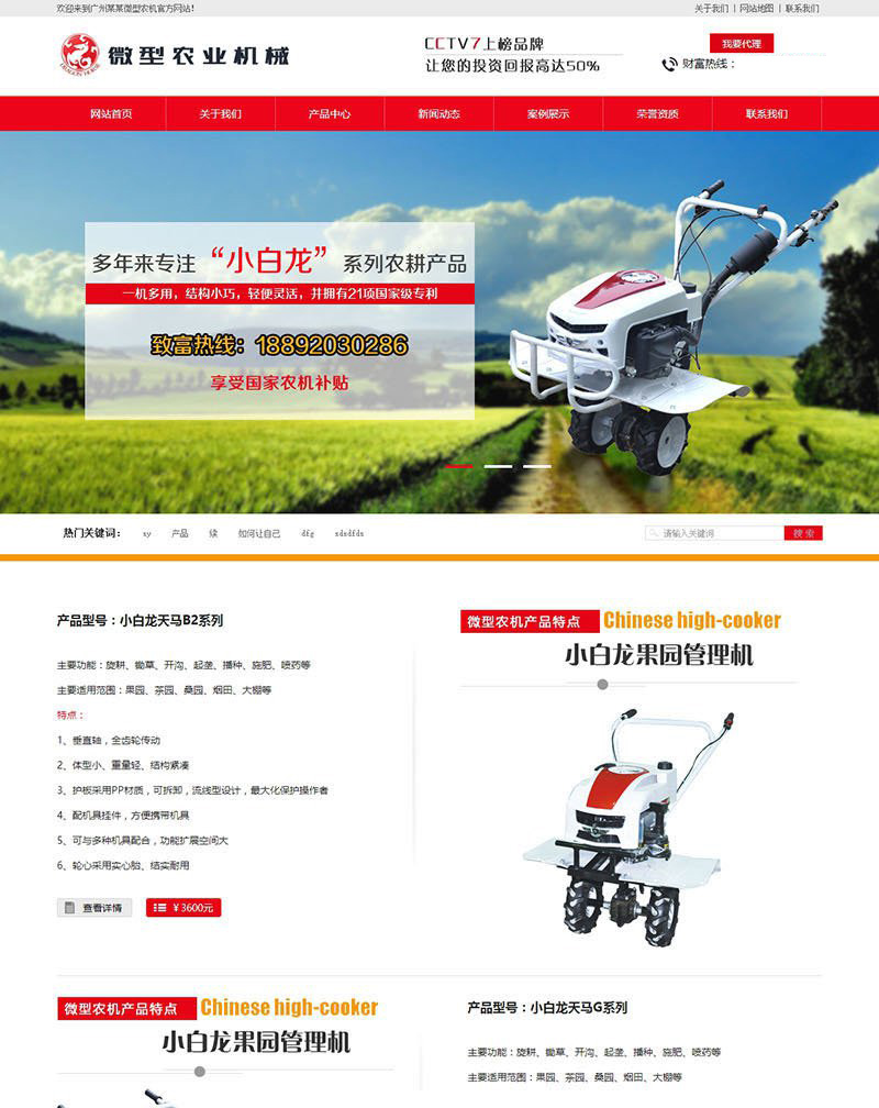 商品名称:营销型微型农业机械设备类网站(带手机端)