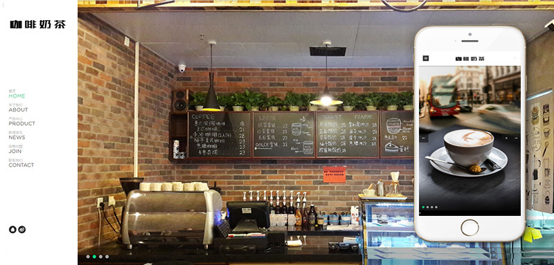 商品名称:响应式带音乐背景咖啡奶茶食品类网站(自适应手机端)