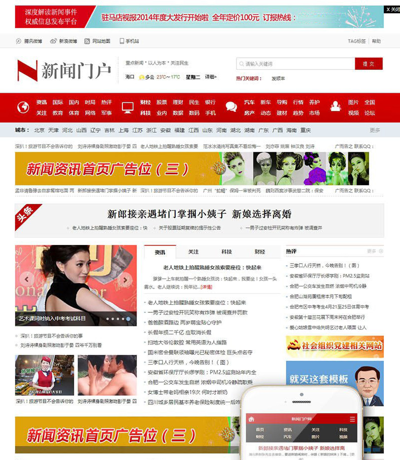 商品名称:新闻在线博客地方门户资讯类网站(带手机端)