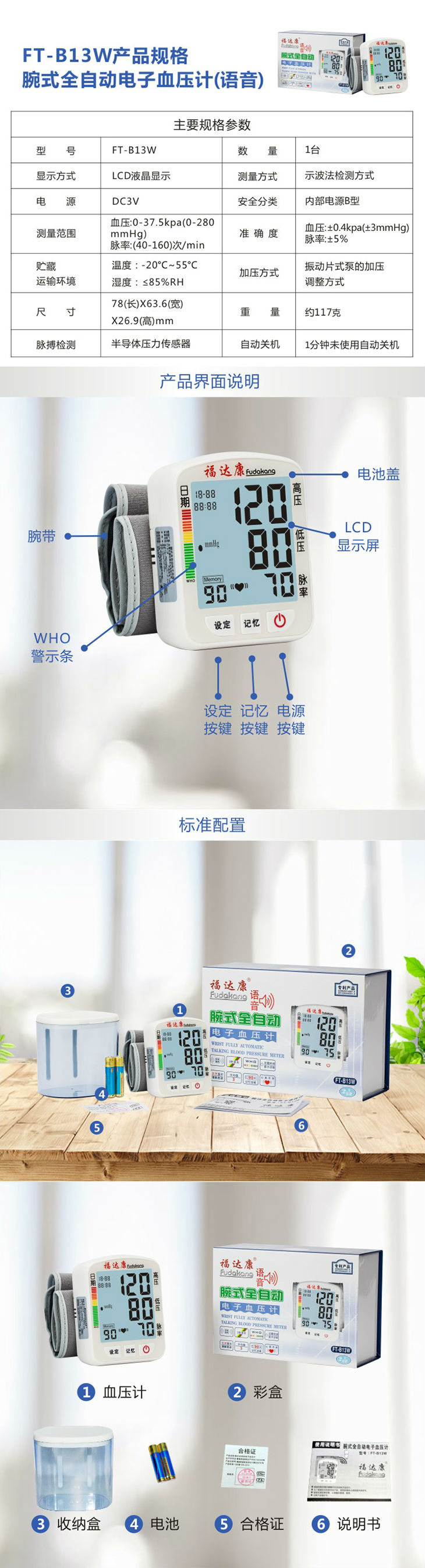 商品名称:B13W腕式血压计