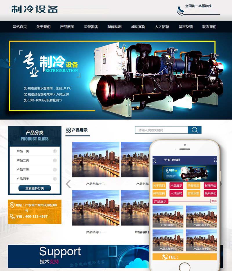 商品名称:制冷压缩机机械设备类网站(带手机端)