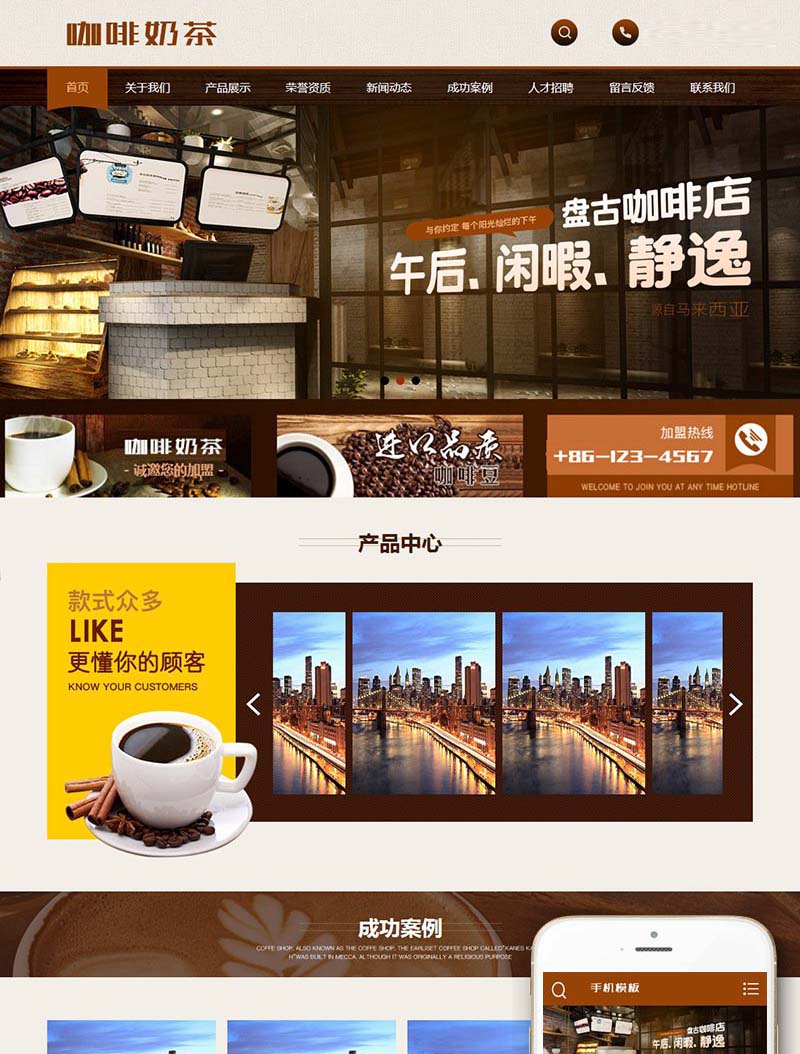 咖啡奶茶食品餐饮店类网站(带手机端)