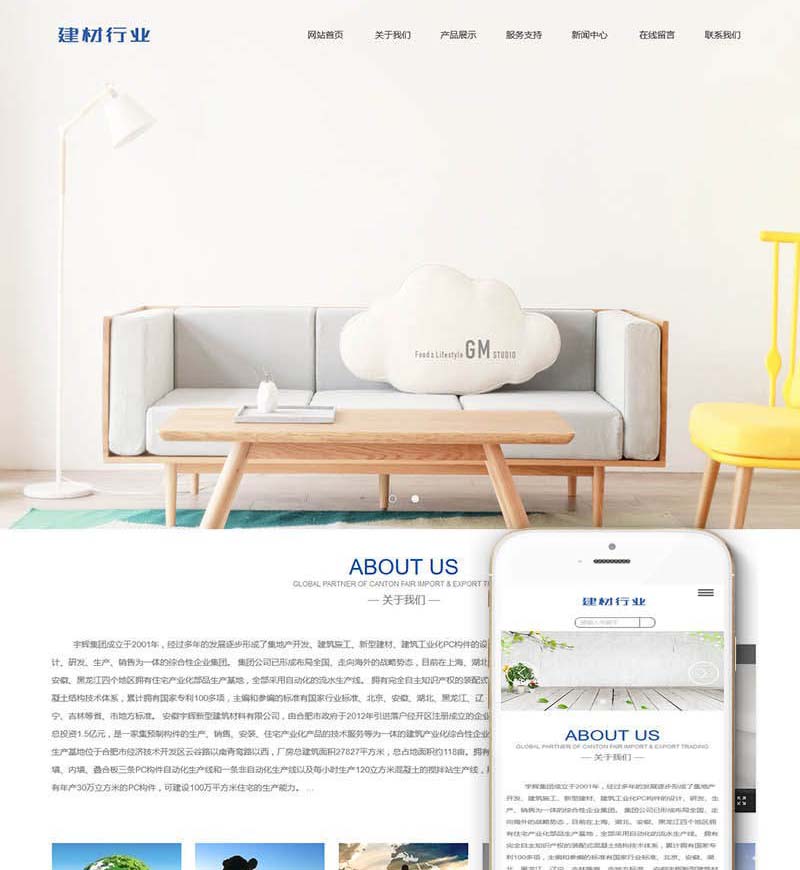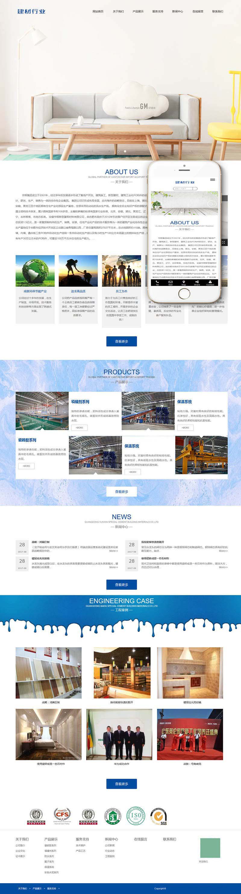 商品名称:响应式建筑建材水泥生产网站(自适应手机端)