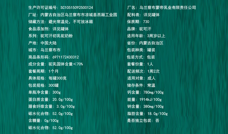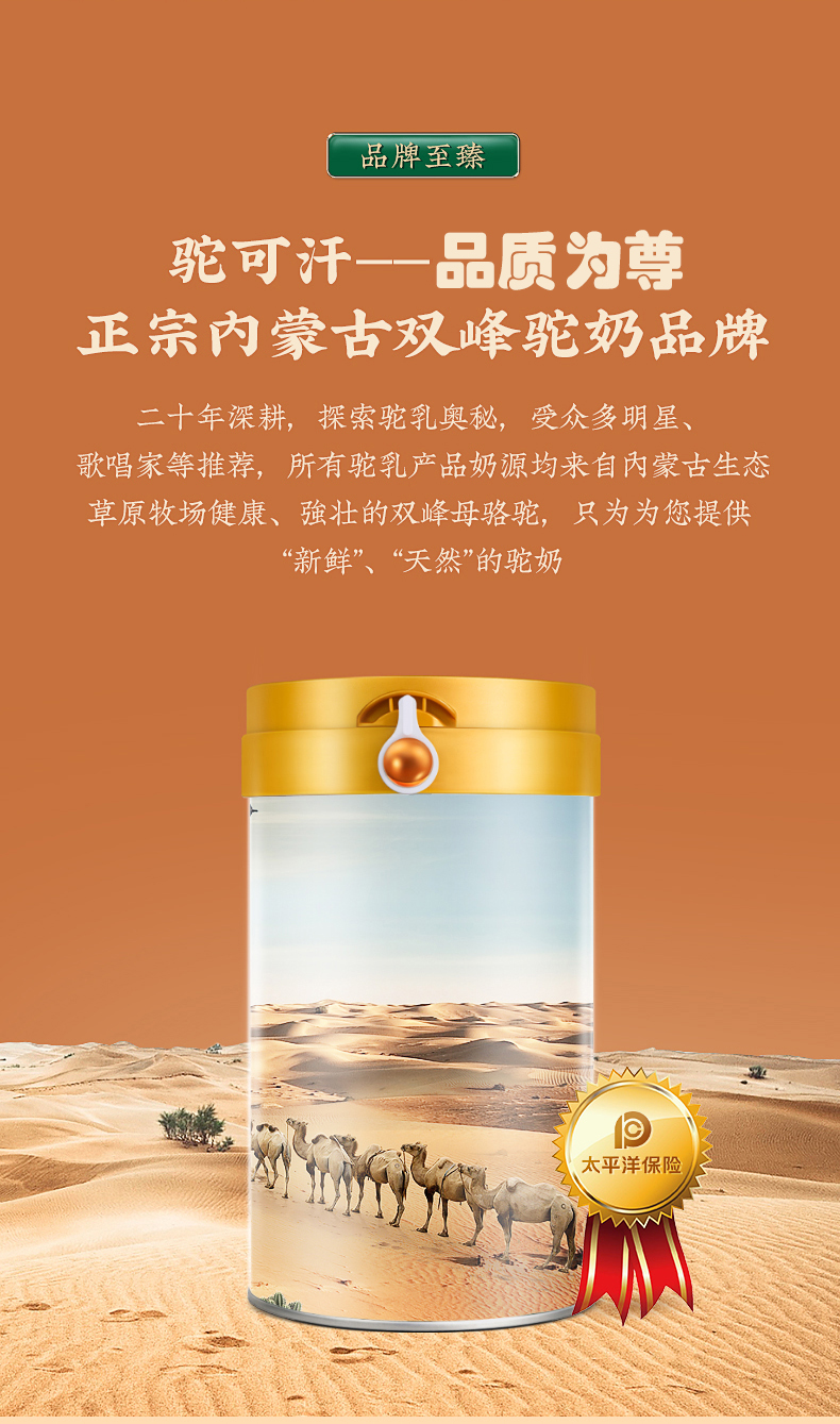 商品名称:内蒙古驼可汗初乳骆驼奶粉,学生驼奶粉,无糖中老年驼乳粉,成人滋补品
