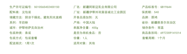 商品名称:那鸿免疫球蛋白配方羊乳粉400g盒买3送1孕妇乳母学生老人用