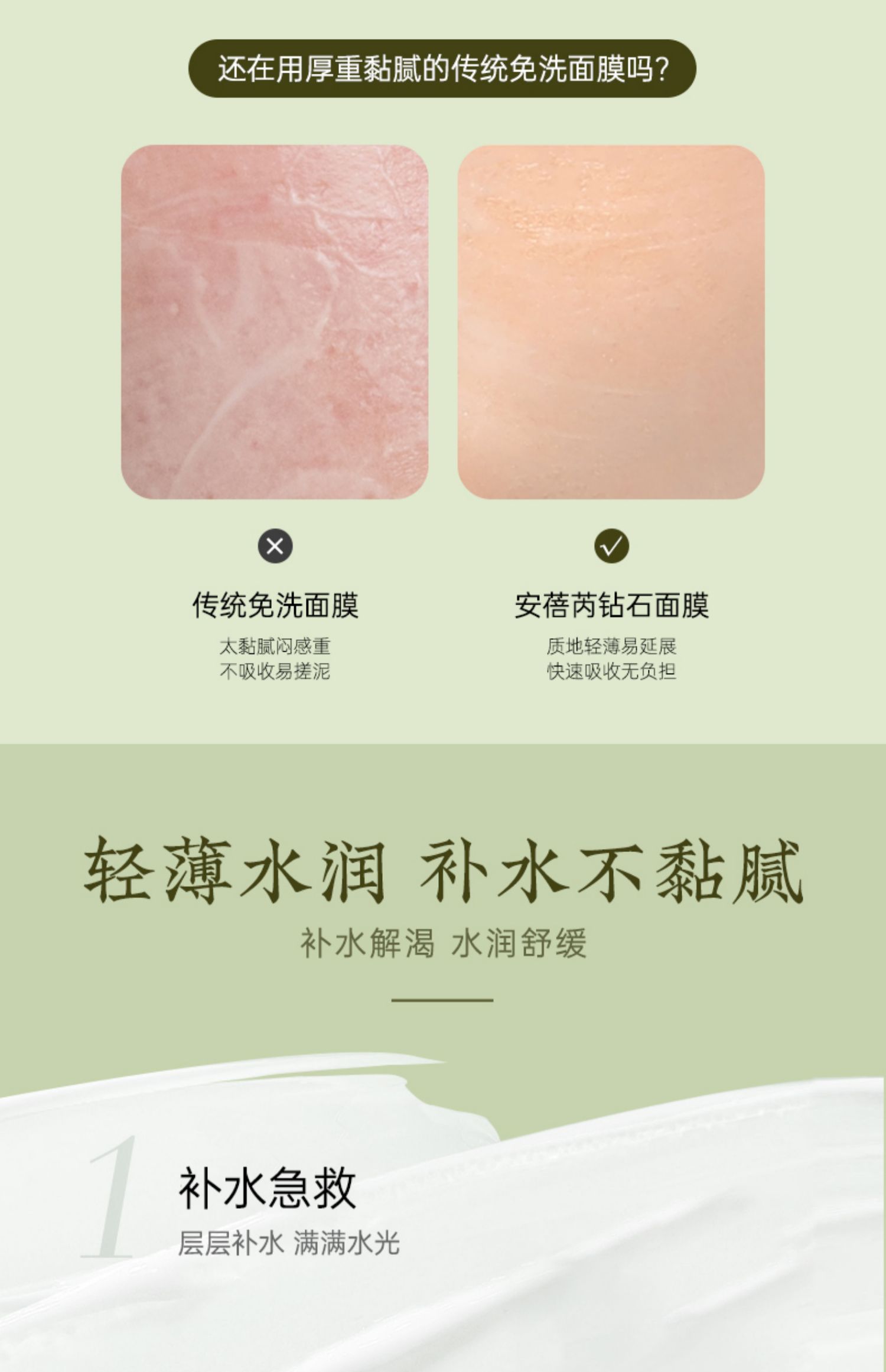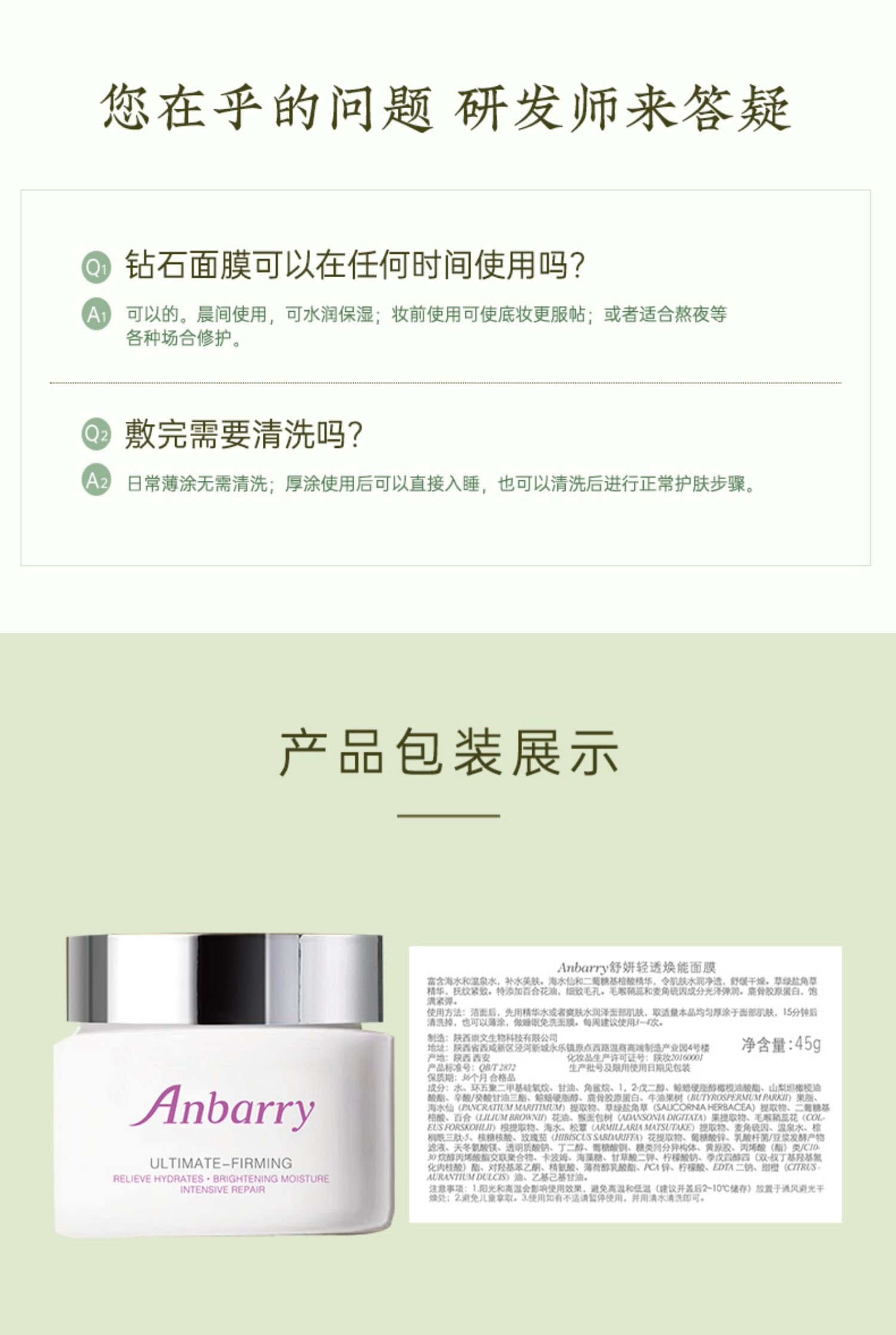 安蓓芮钻石面膜涂抹式清洁面膜泥膜补水保湿修护收缩毛孔保湿深度清洁