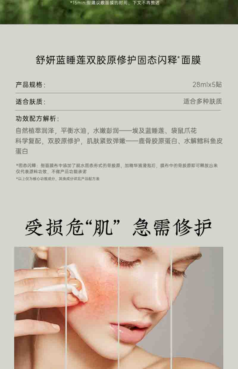 商品名称:安蓓芮舒妍蓝睡莲双胶原修护固态闪释面膜