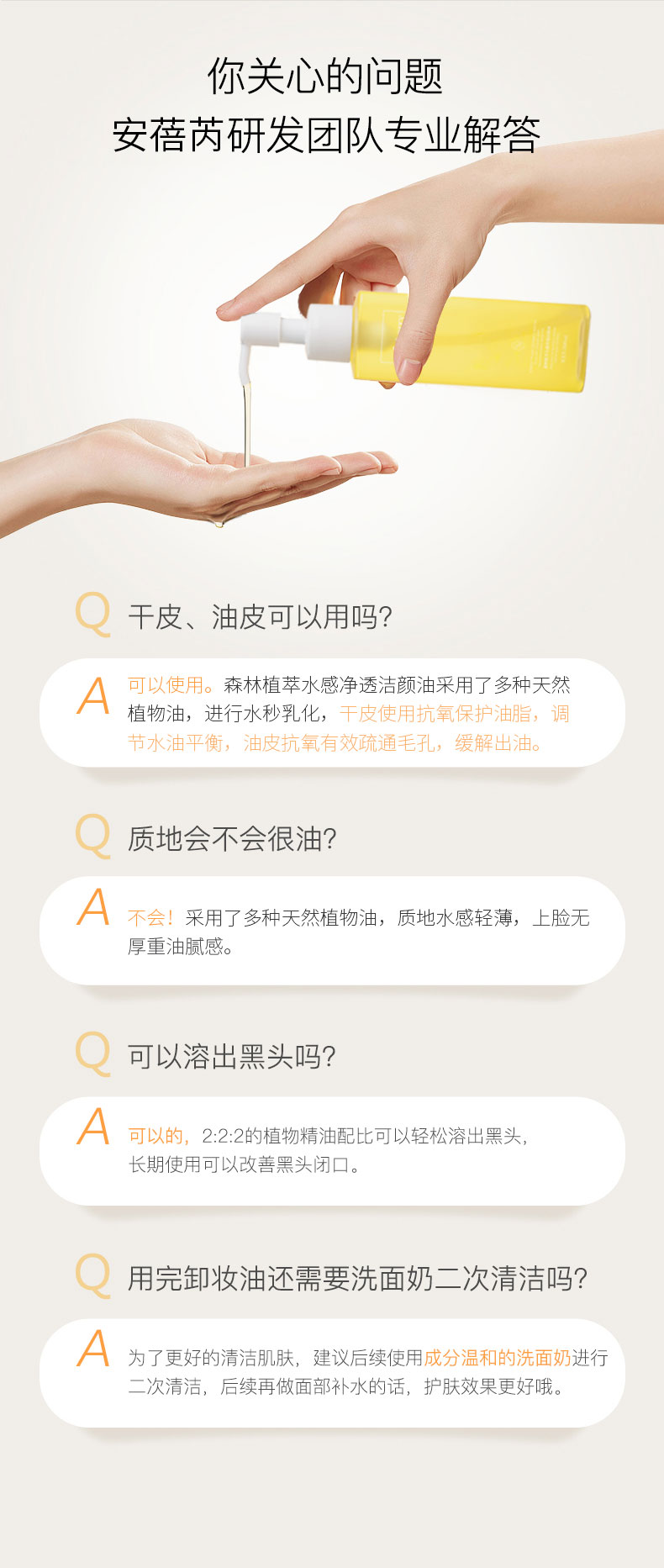 商品名称:深层清洁清爽不油腻不紧绷森林植萃洁颜油