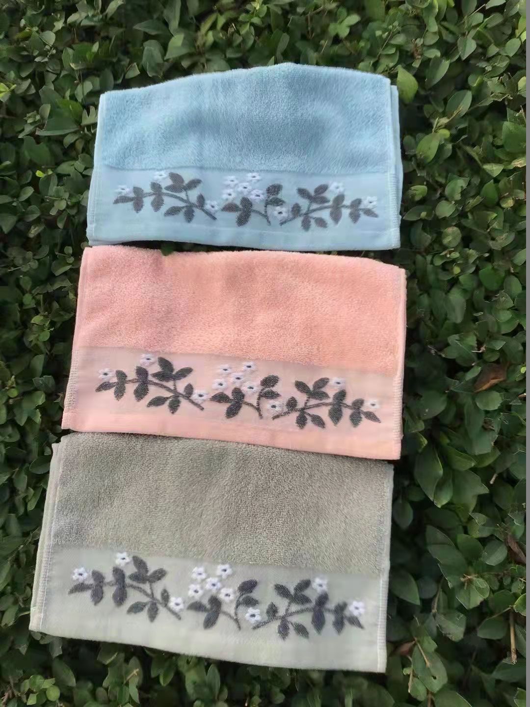 14支弱捻纱毛巾 尺寸34cm*74cm 重量110g房子.素运动.三角花.绿茶.树叶花.素字母.字母衣服.三段条等图案毛巾