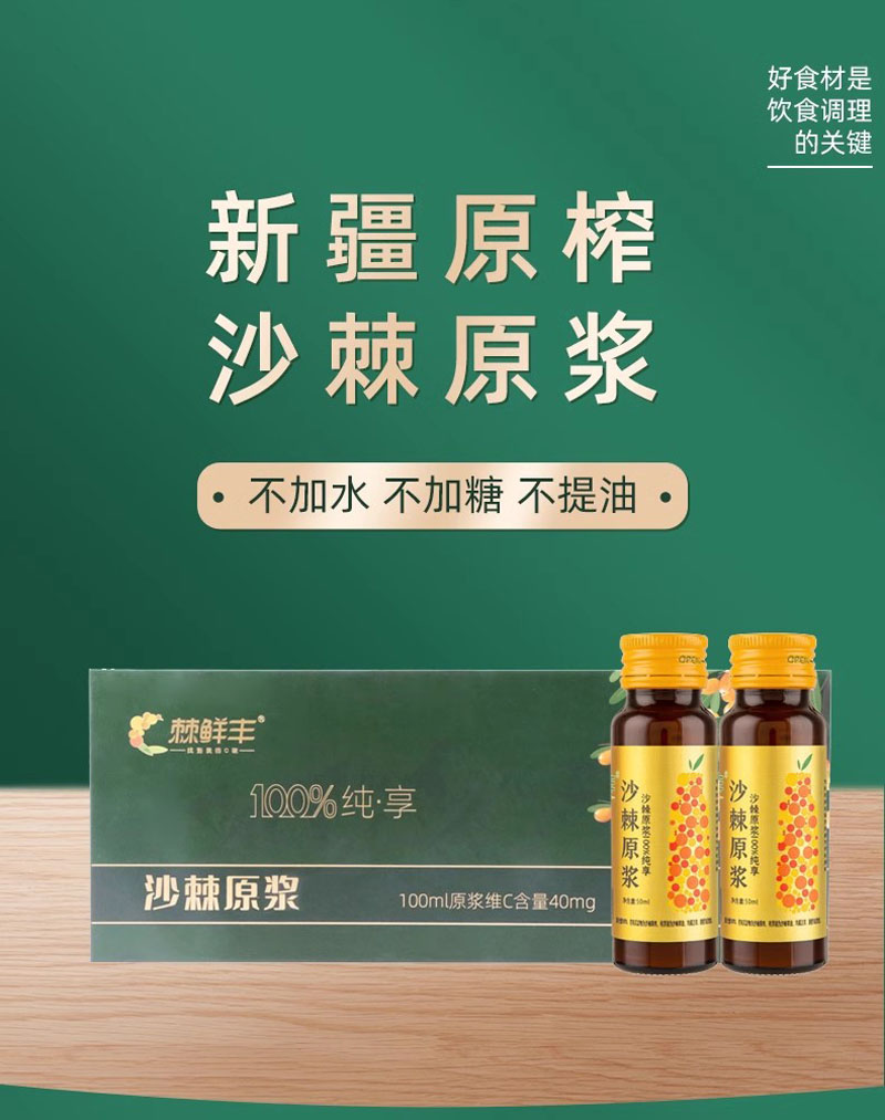 沙棘原浆新疆特产沙棘原浆富含vc沙棘果鲜榨果浆50ML*8瓶