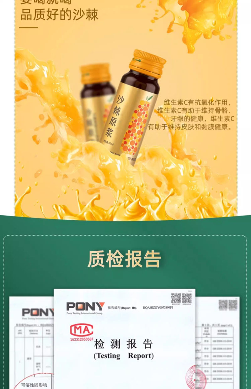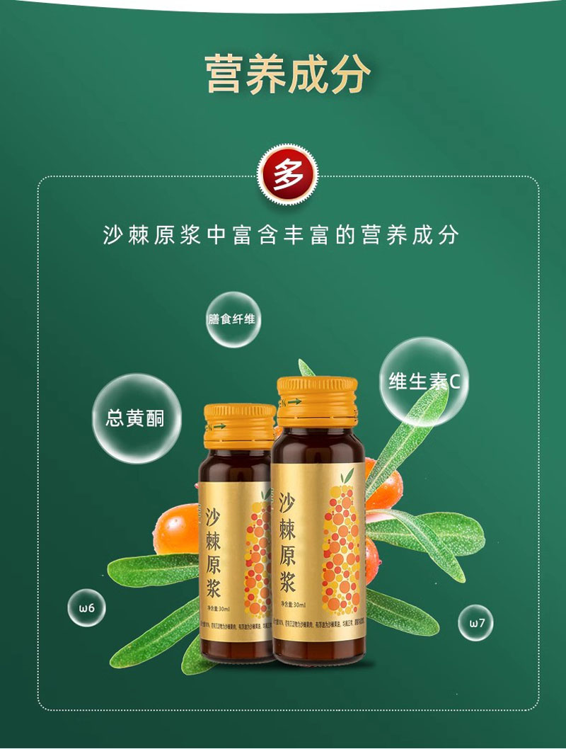 商品名称:沙棘原浆新疆特产沙棘原浆富含vc沙棘果鲜榨果浆50ML*8瓶