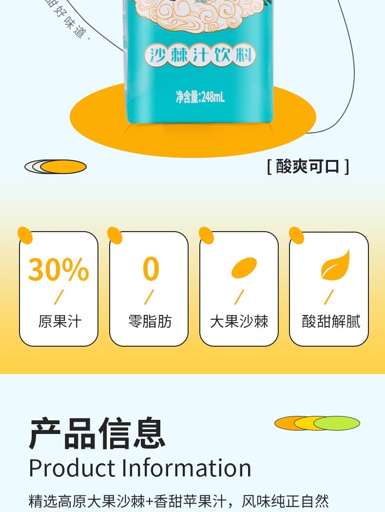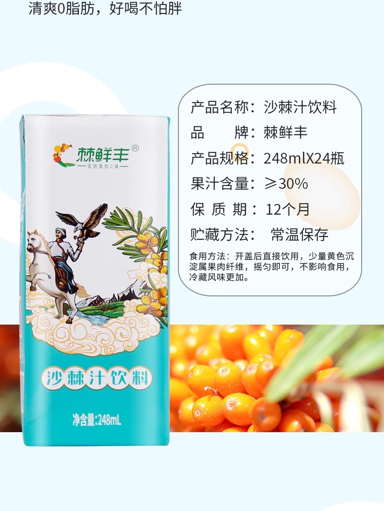 商品名称:棘鲜丰沙棘汁饮料(利乐包)沙棘果汁低脂肪新疆饮料沙棘vc饮品248ml*24瓶