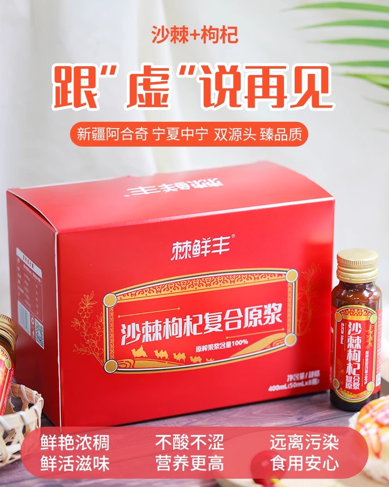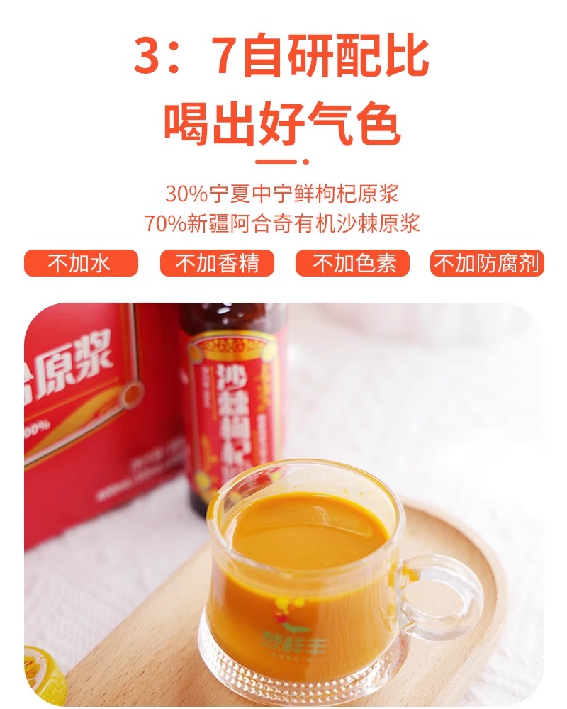 棘鲜丰沙棘枸杞复合原浆50ML*8瓶/盒富含维C