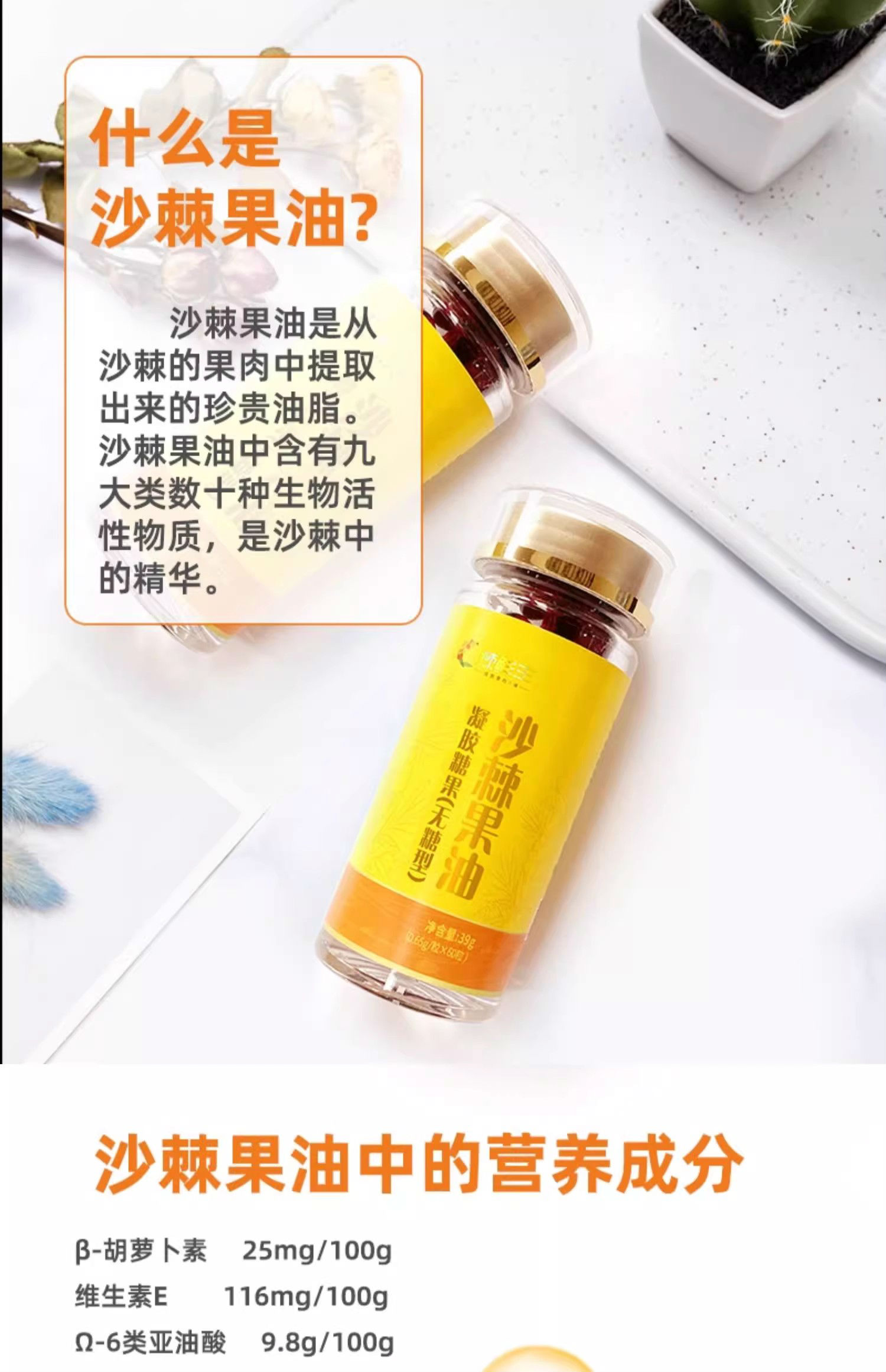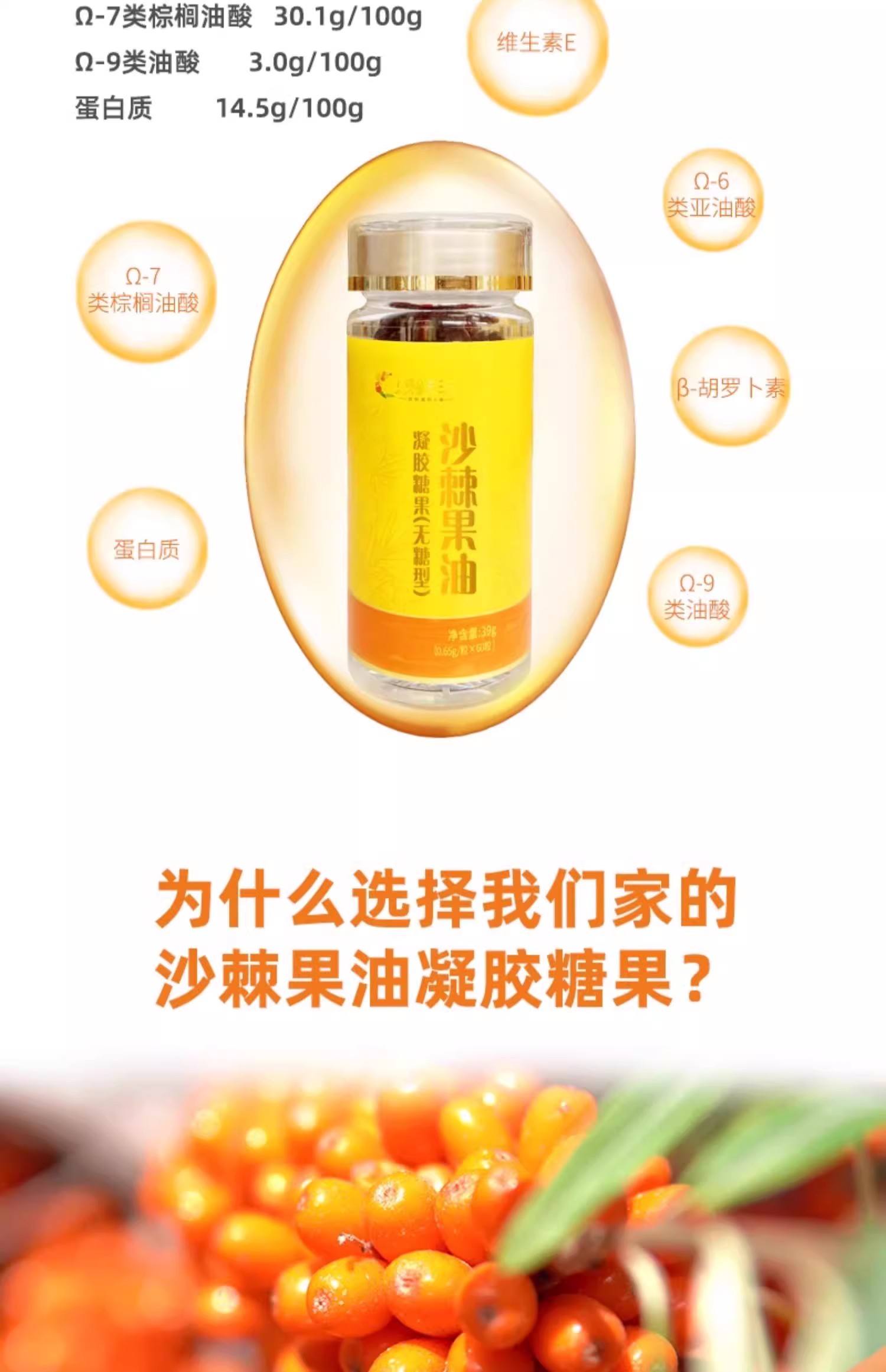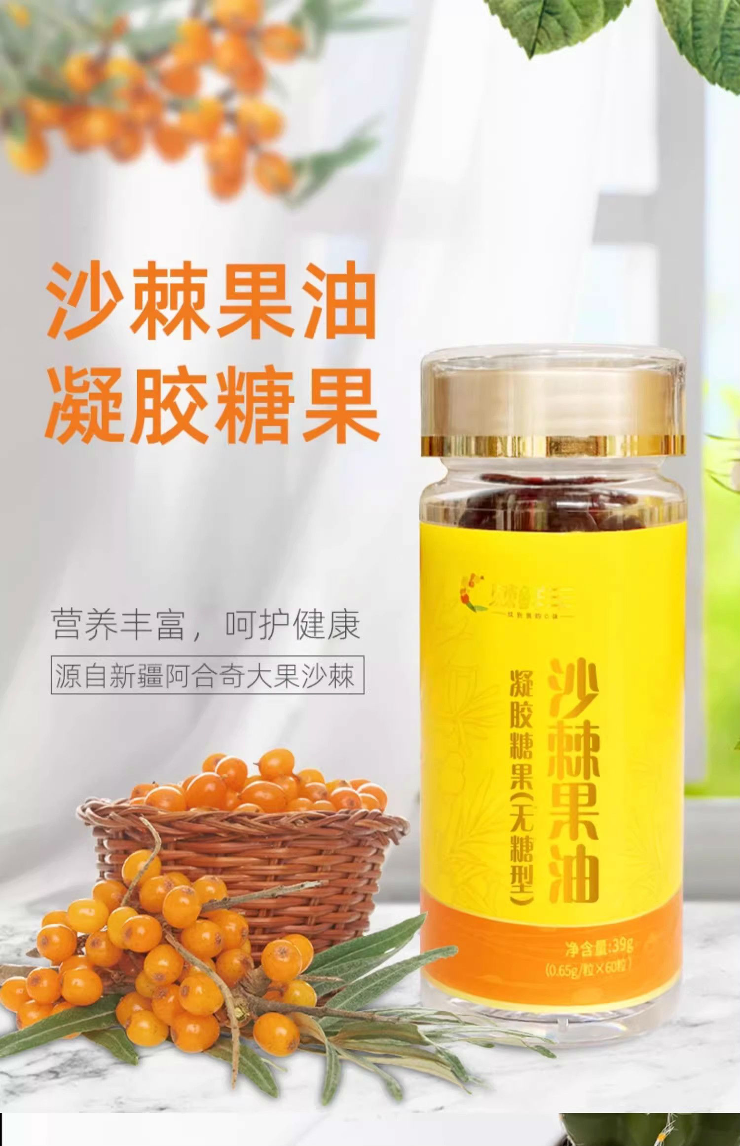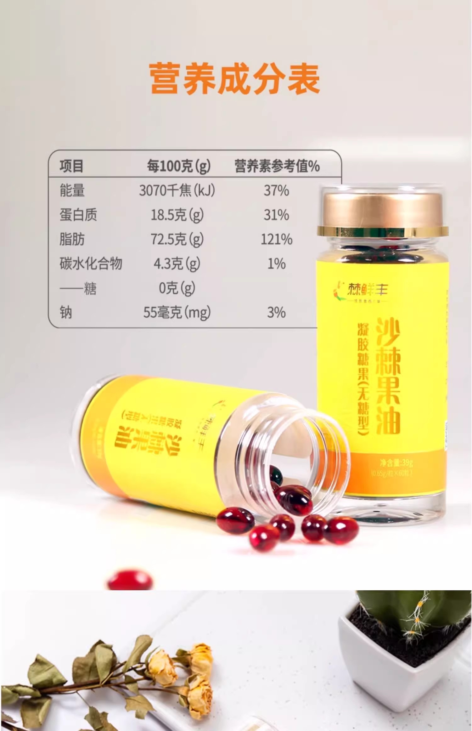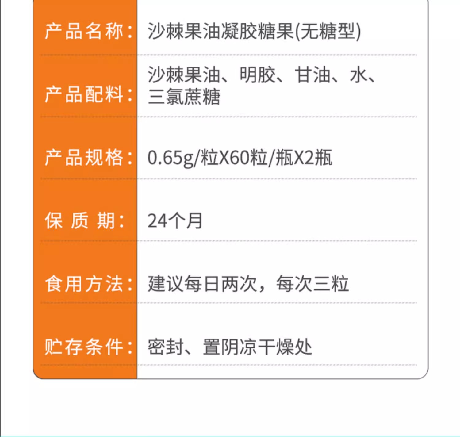 商品名称:棘鲜丰沙棘果油凝胶糖果 (礼盒) 78g(0.65g*60 粒*2瓶)