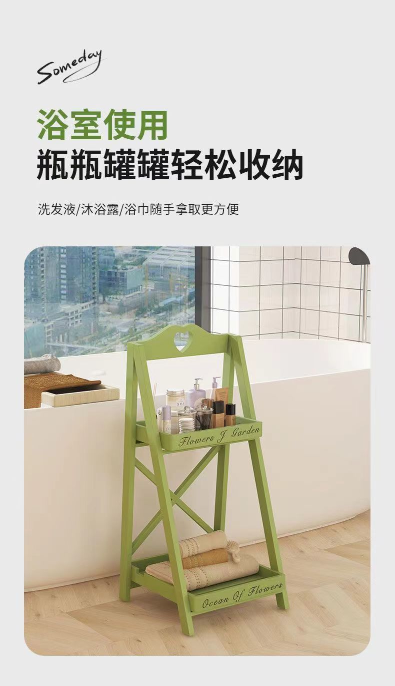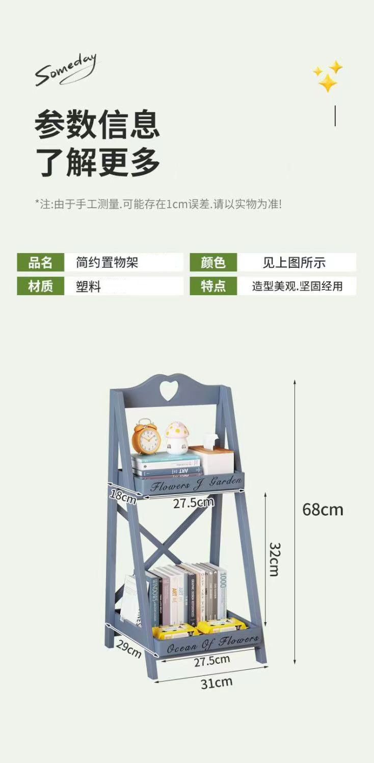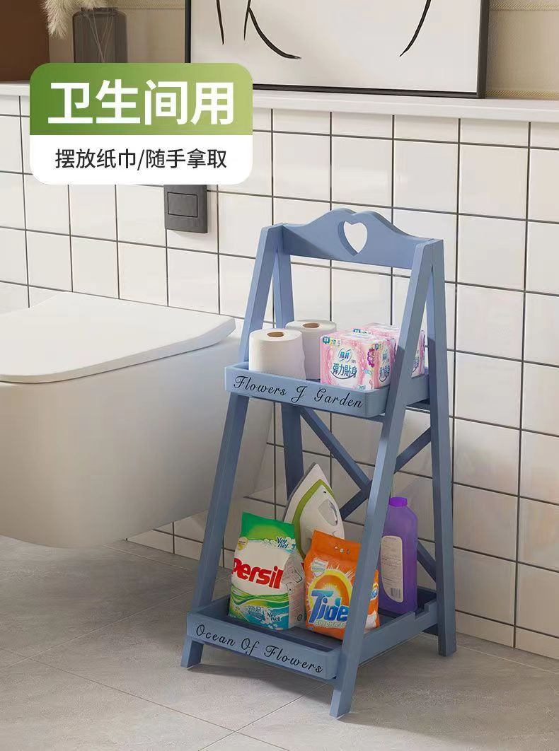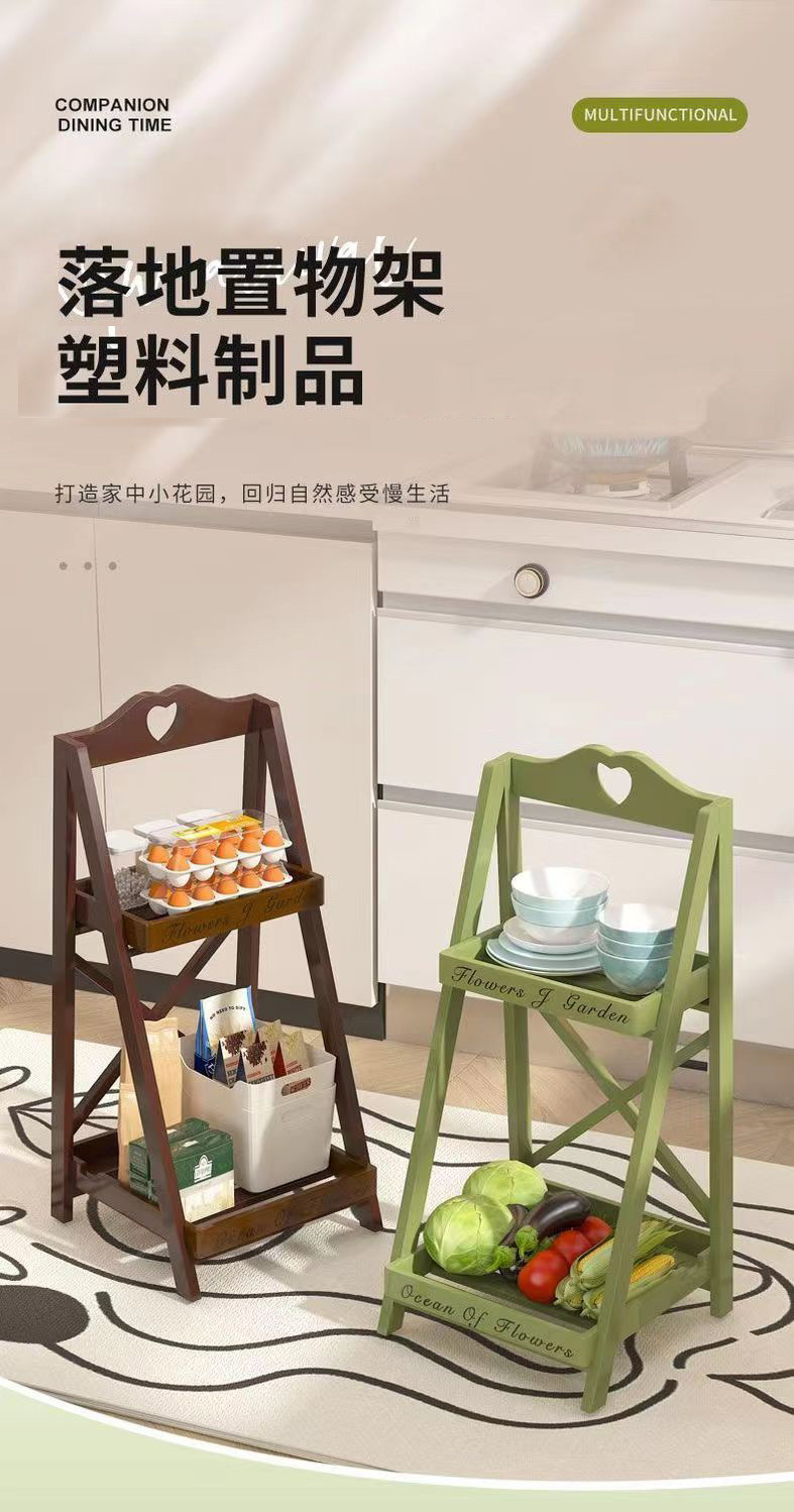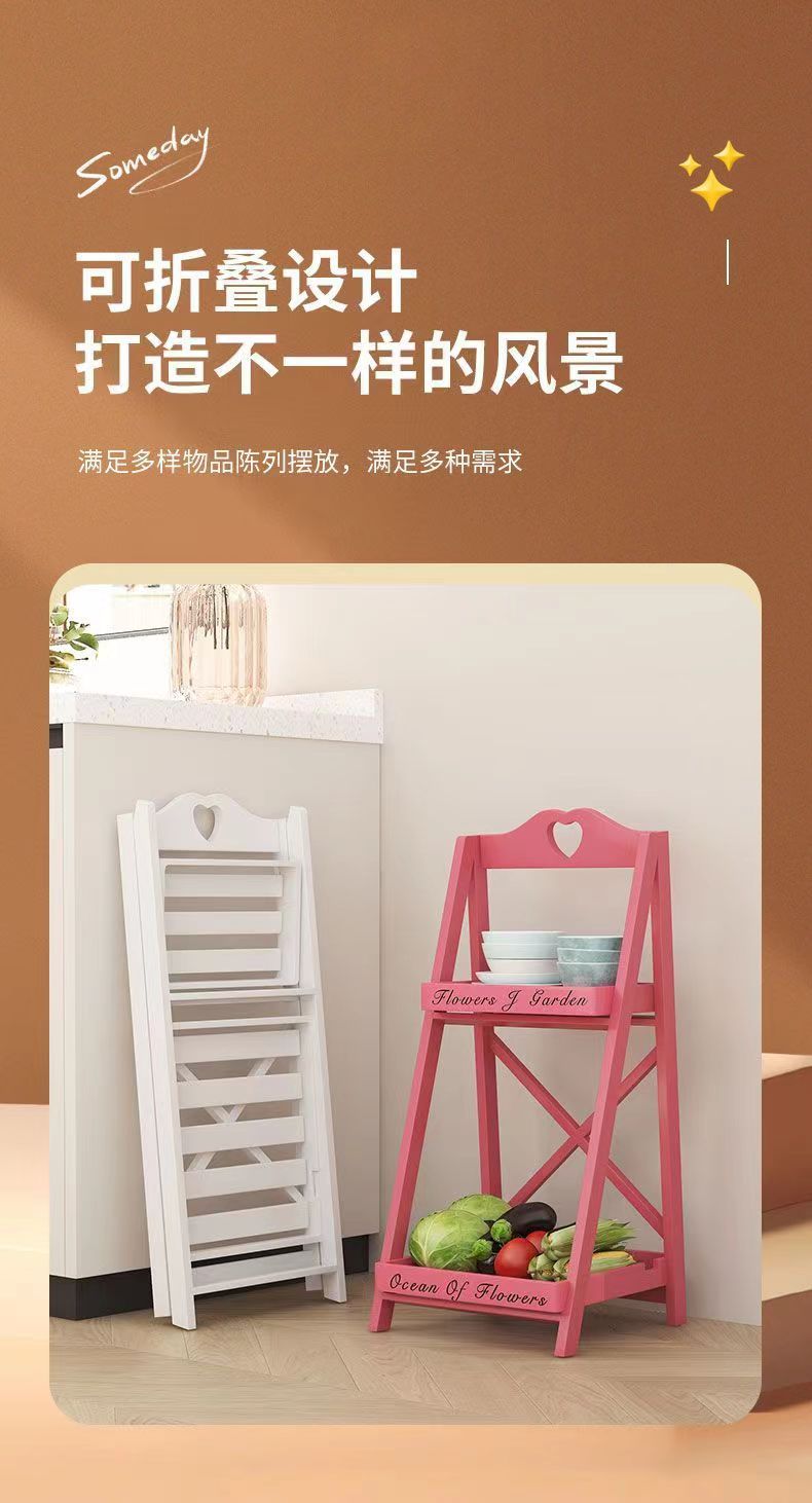 商品名称:梯形免安装置物架新款环保双层置物收纳架浴室PP可以折叠架厨房卧室家用卫生间置物