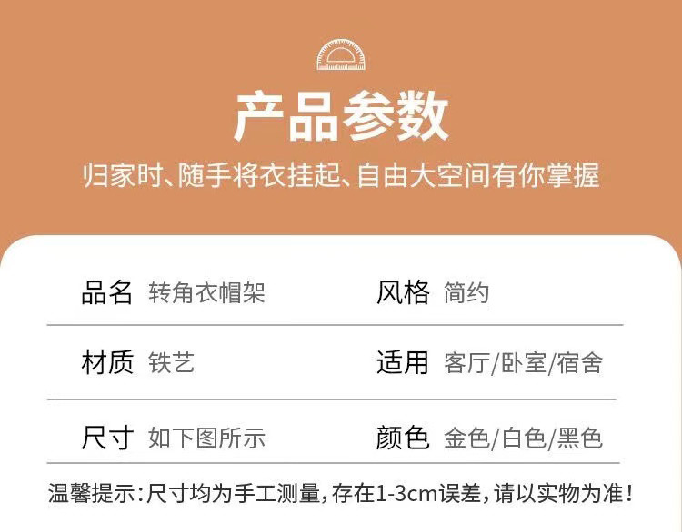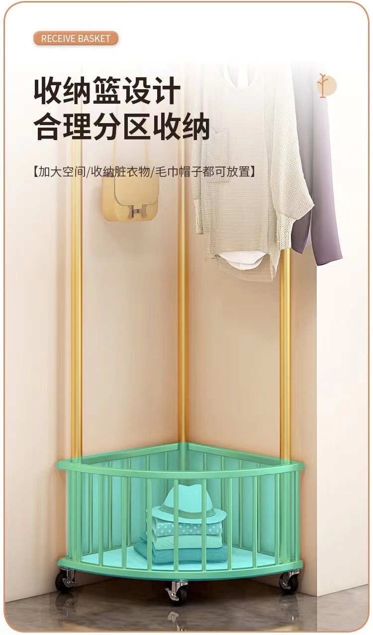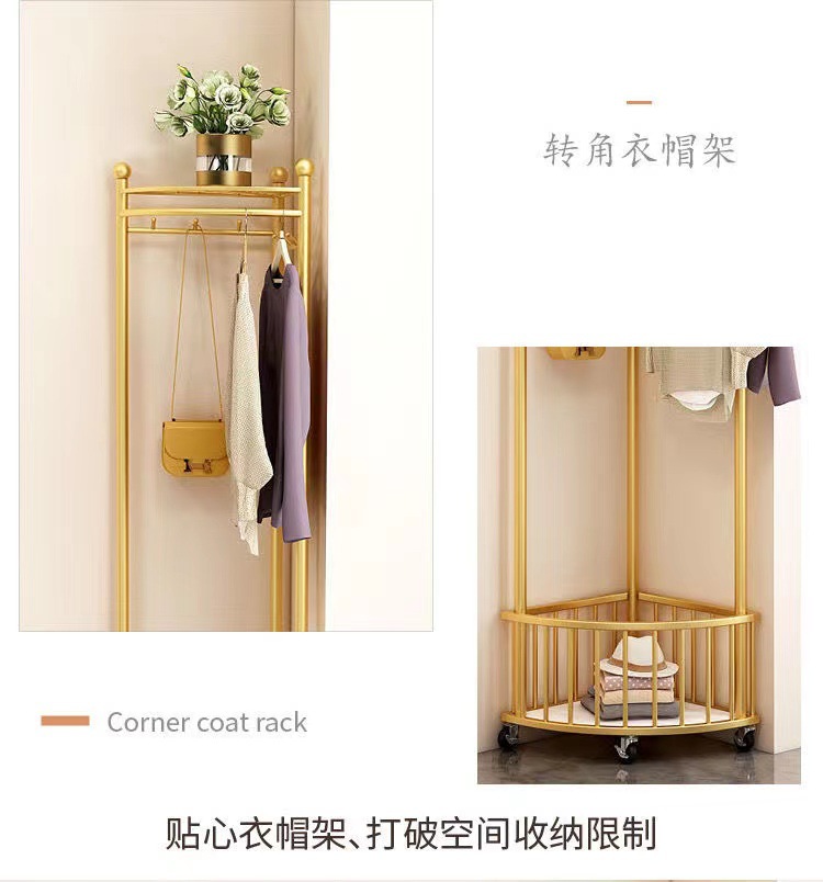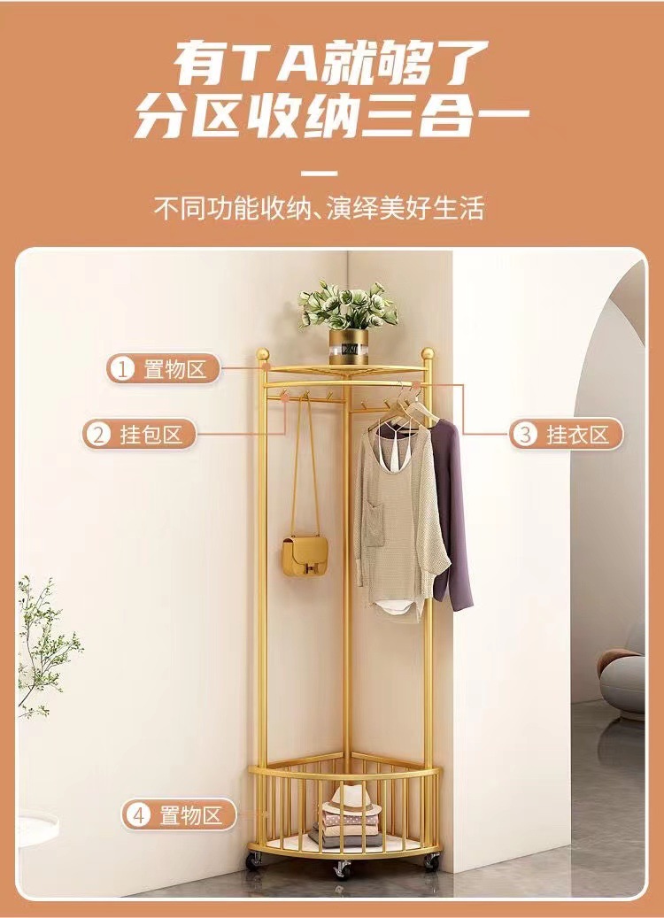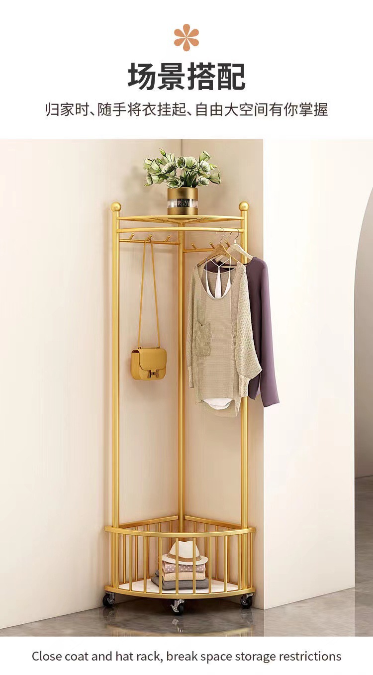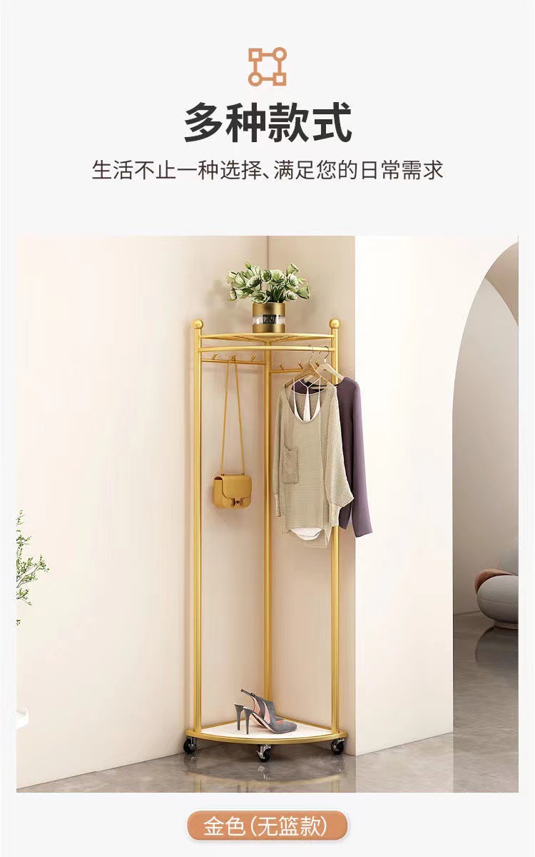 商品名称:转角衣帽架三角衣架落地立式直角衣架室内轻奢简易挂衣架转角置物架