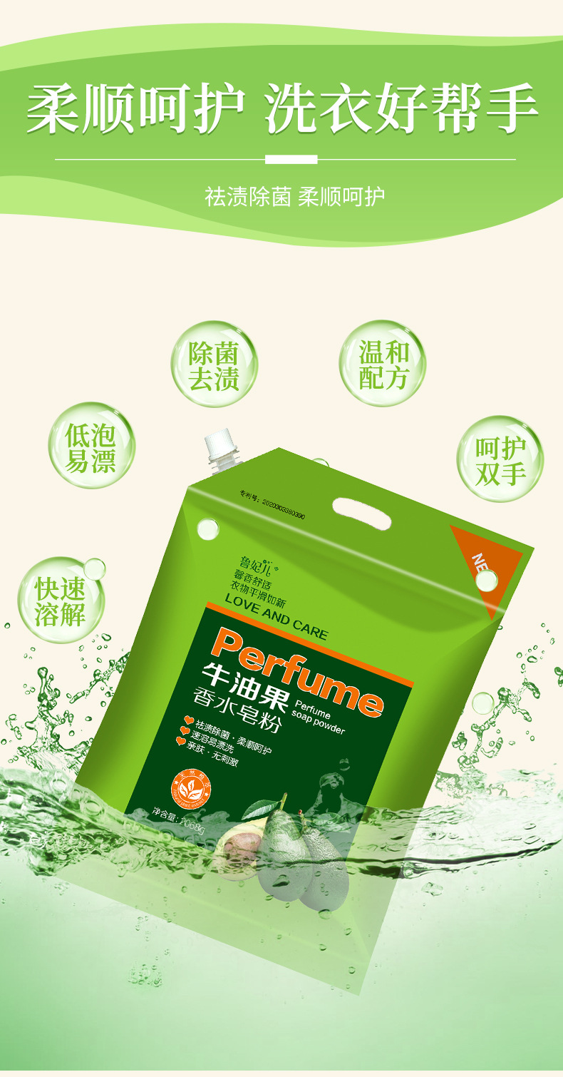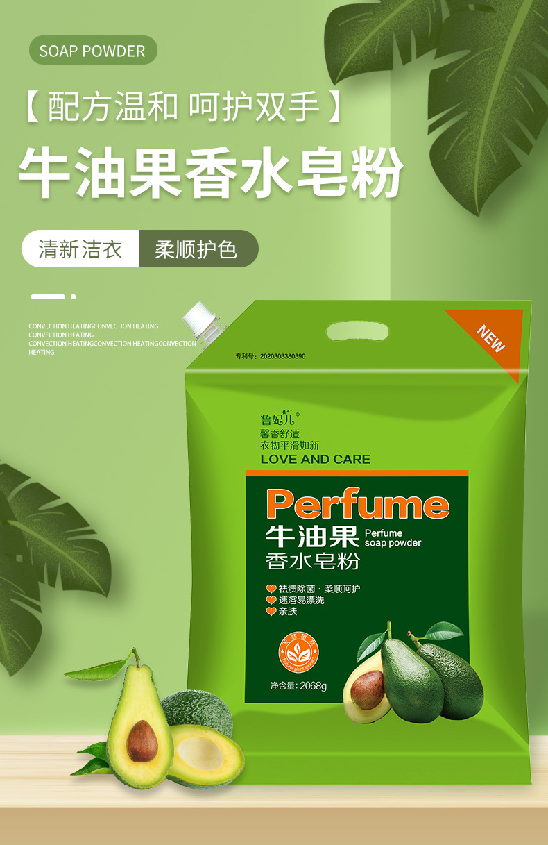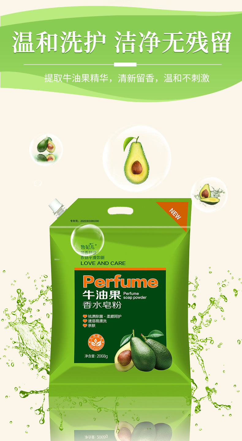 商品名称:2068g*4包牛油果皂粉牛油果香水皂粉速溶易漂洗去渍去污皂粉