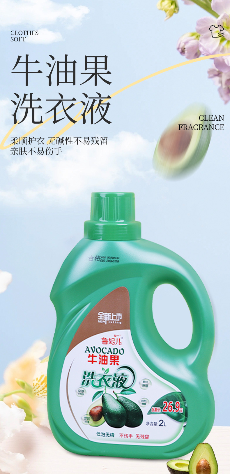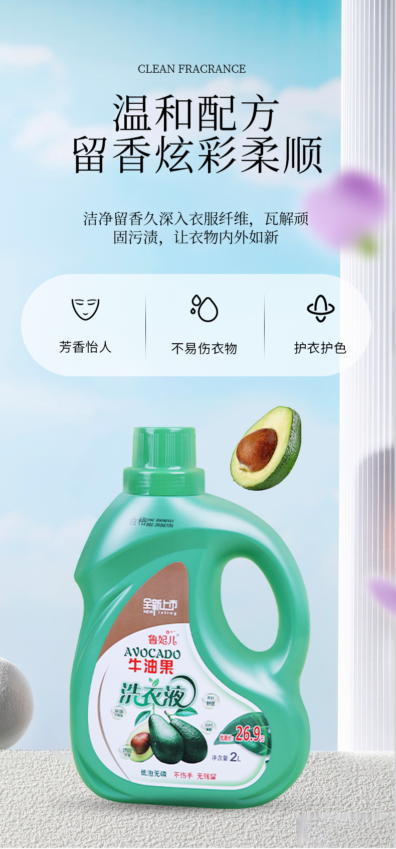 2kg牛油果洗衣液留香护衣护色衣物清洗剂去油渍