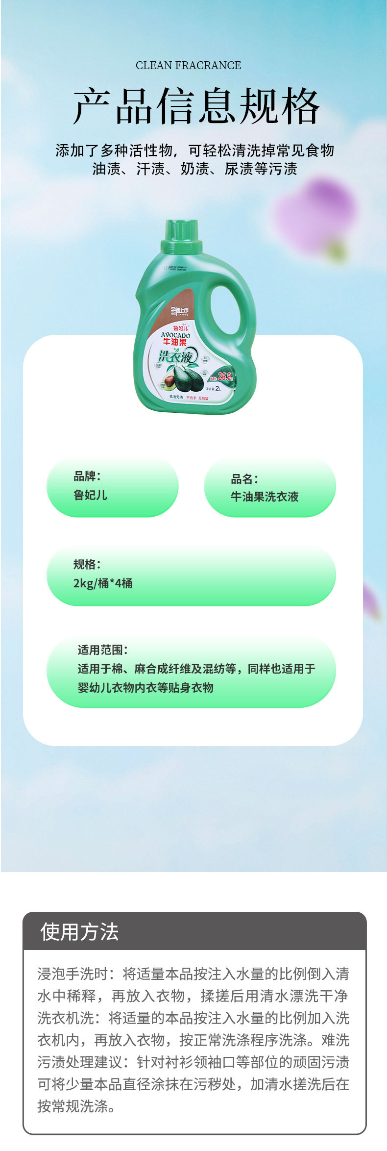 商品名称:2kg牛油果洗衣液留香护衣护色衣物清洗剂去油渍