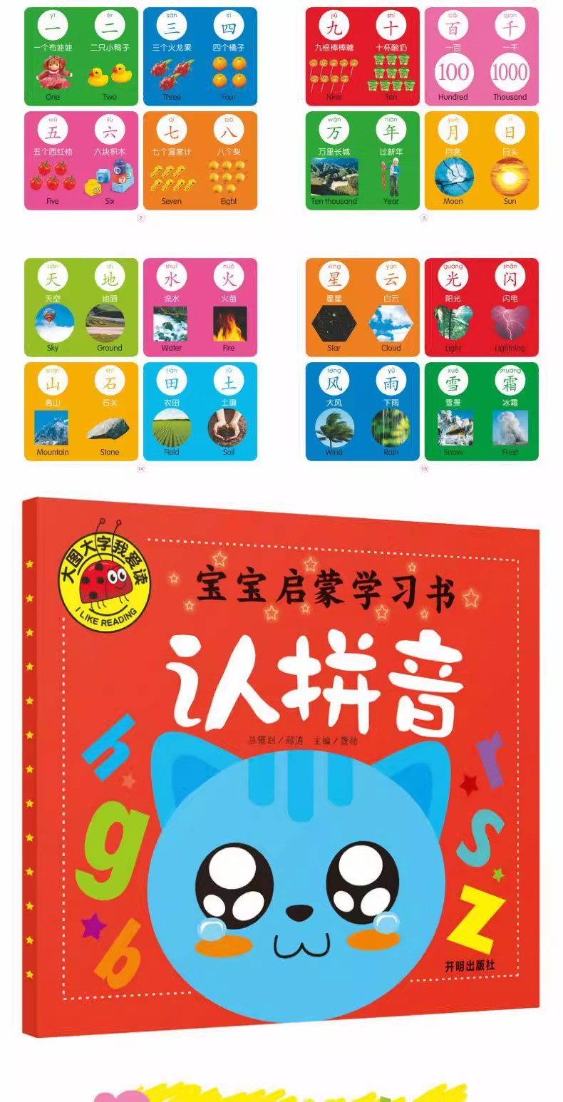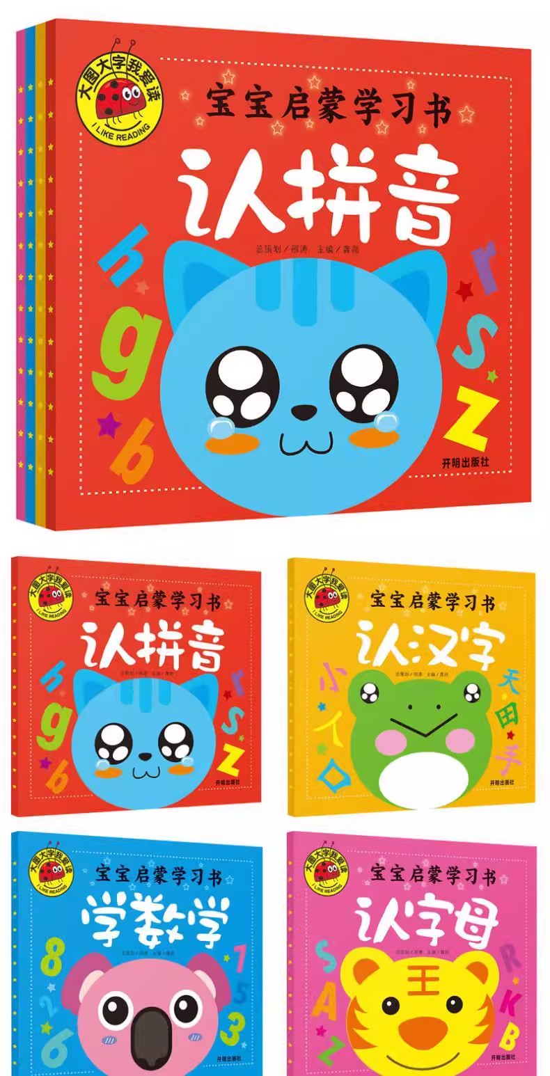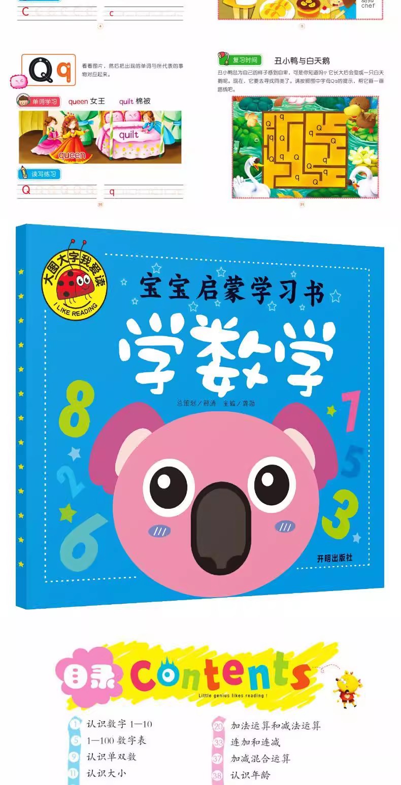 商品名称:宝宝启蒙学习书·认字母+认拼音+认汉字+学数学(全四册)