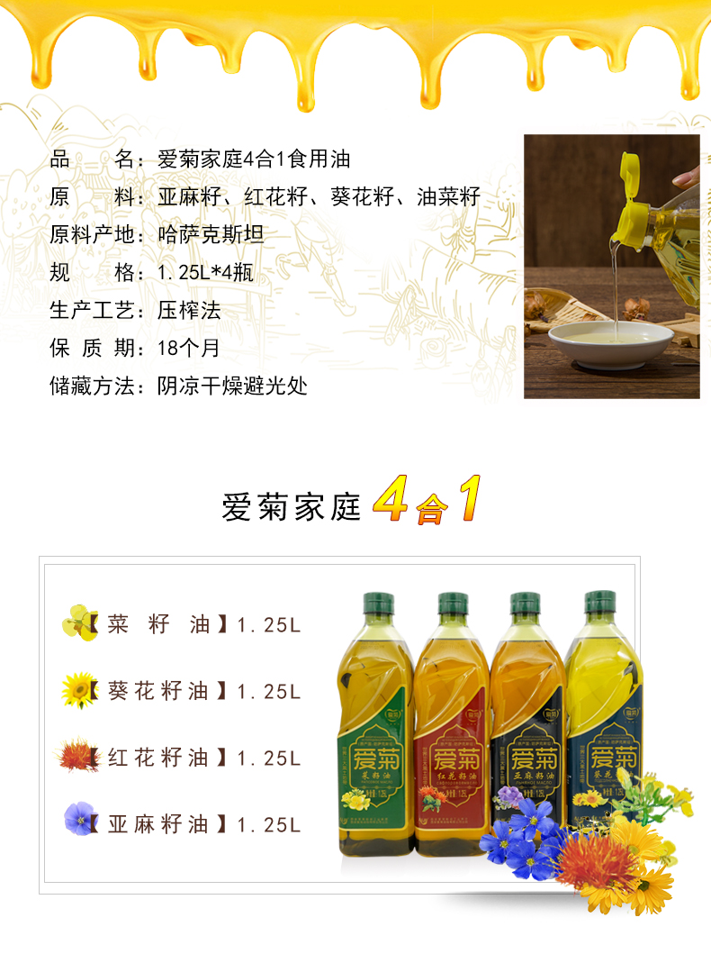 商品名称:哈国四合一金装手提1.25L*4 爱菊放心粮油