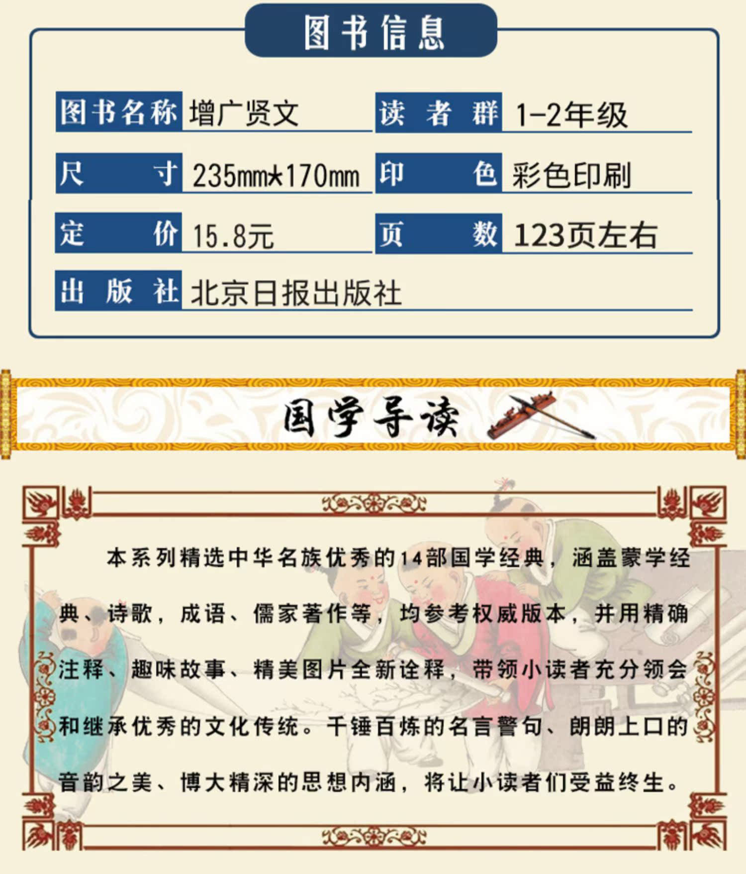 商品名称:增广贤文 影响孩子一生的国学启蒙经典(注音彩图版)北京日报出版社