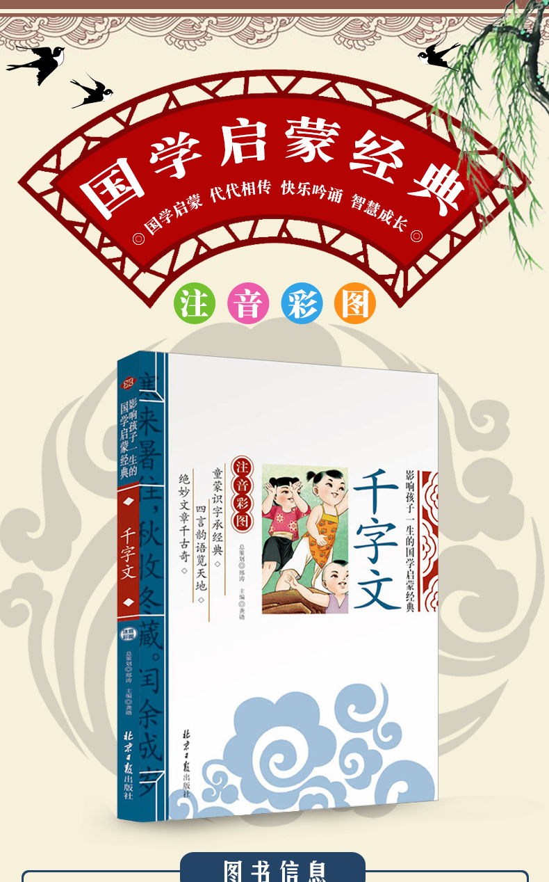 商品名称:千字文 影响孩子一生的国学启蒙经典(注音彩图版)北京日报出版社