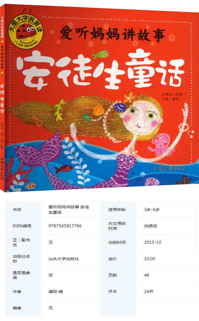 商品名称:大图大字我爱读-爱听妈妈讲故事-安徒生童话 汕头大学出版社