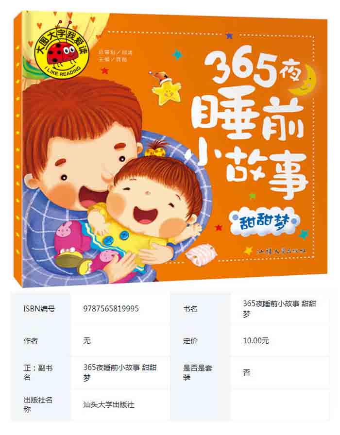 商品名称:大图大字我爱读-365夜睡前小故事-甜甜 汕头大学出版社