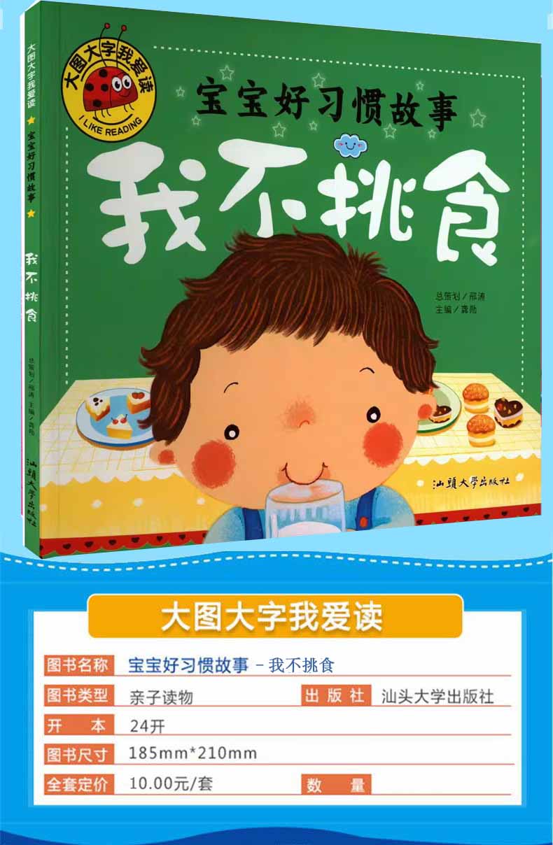 商品名称:大图大字我爱读-宝宝好习惯故事-我不挑食 汕头大学出版社