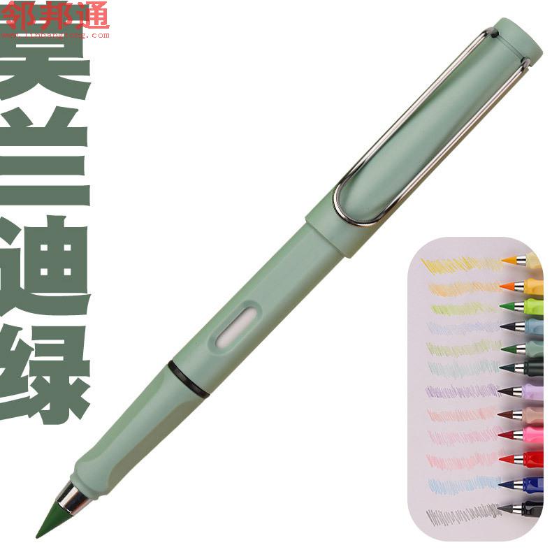 商品名称:彩色铅笔-莫兰迪绿色常规款大杆彩铅黑科技不用削铅笔永恒铅笔学生绘画不易断铅写字