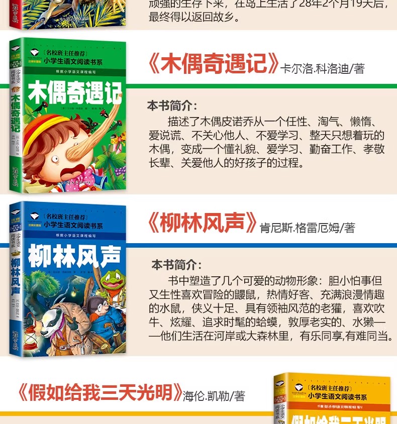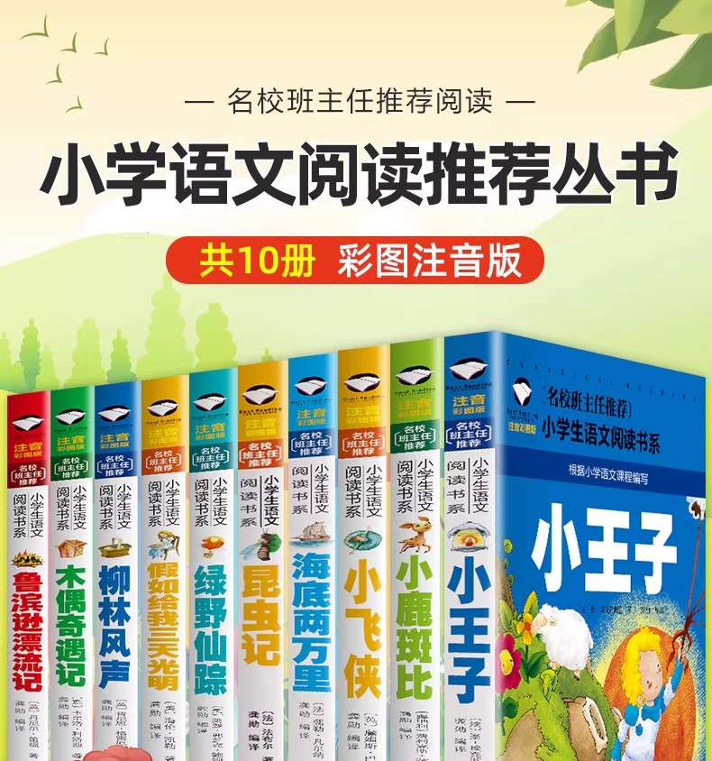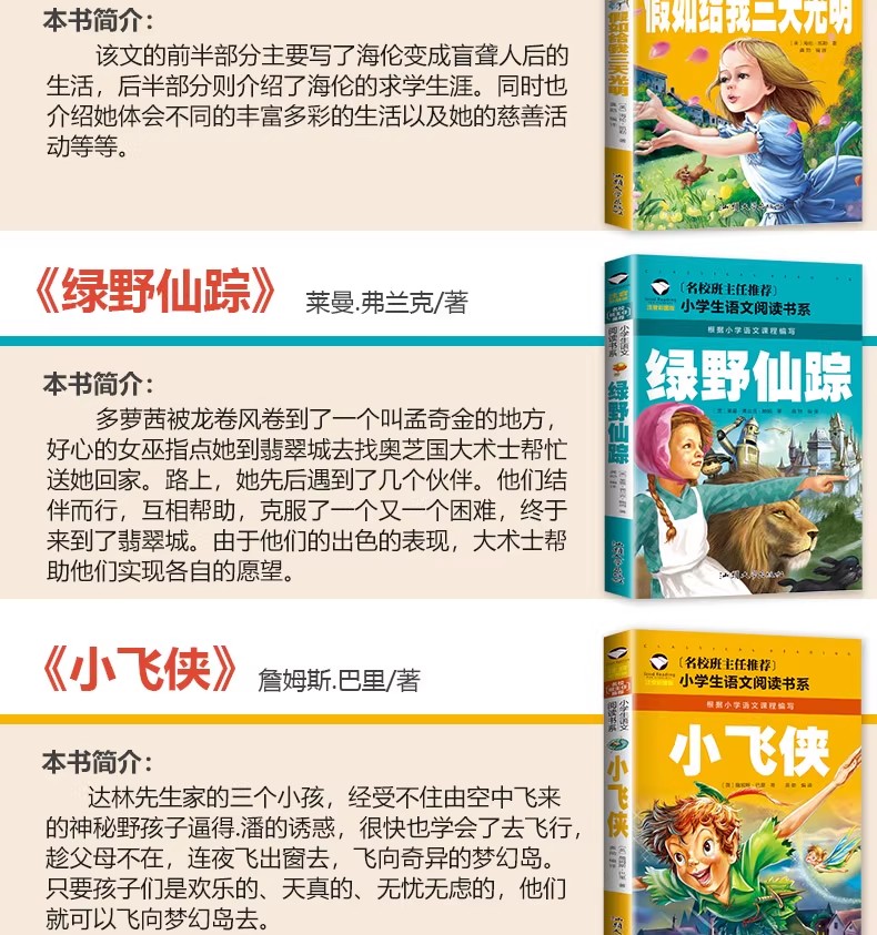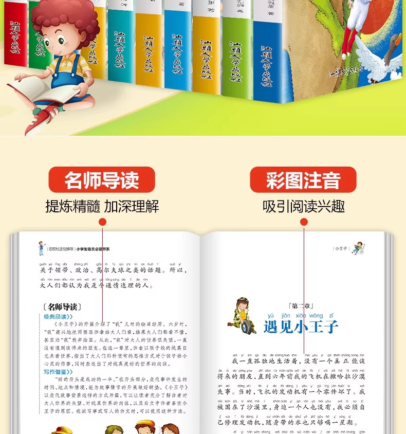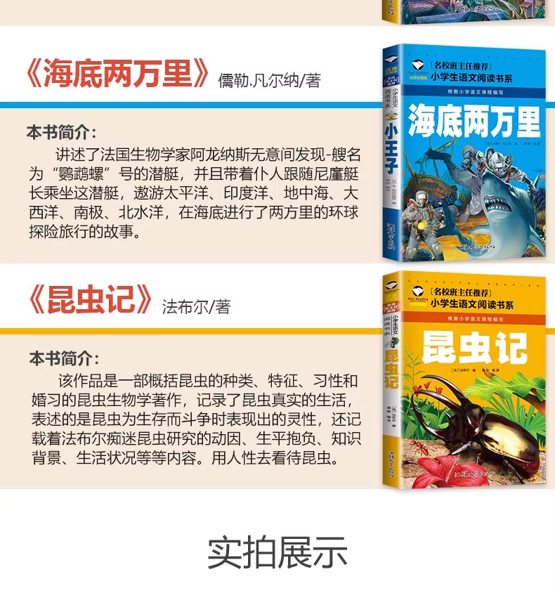 商品名称:小学生语文阅读书系 小王子 小鹿斑比 小飞侠 海底两万里, 昆虫记, 绿野仙踪, 假如给我三天光明 木偶奇遇记 鲁宾逊漂流记 中华上下五千年 汕头大学出版社